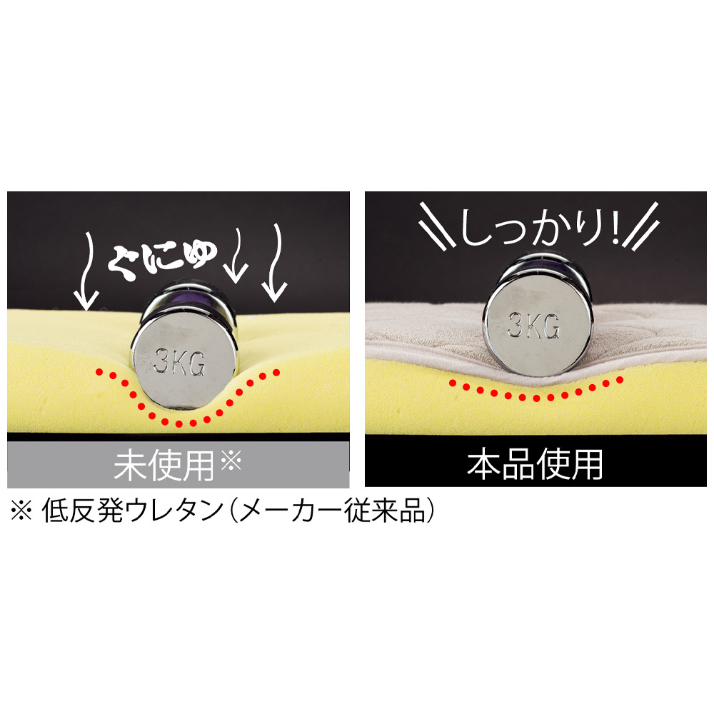 低反発のマットレスを使った実験では、本品を敷くだけで沈み込み具合に ここまでの違いが!