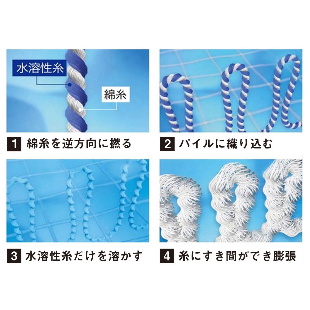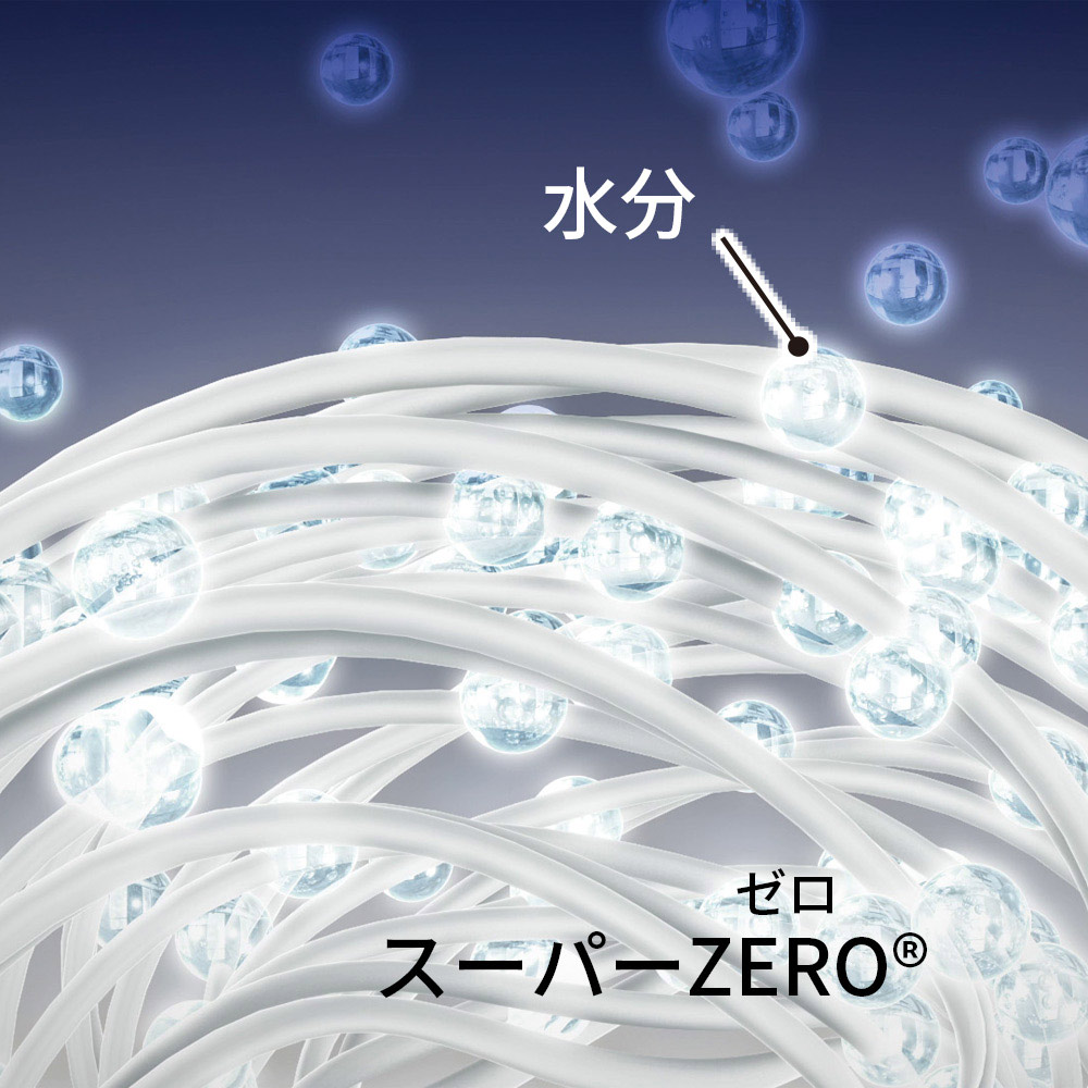 特殊工法で生まれた国内製造の特殊糸・SUPER ZERO(R)は、とびきりやわらかくふわふわの肌ざわりが特長です。