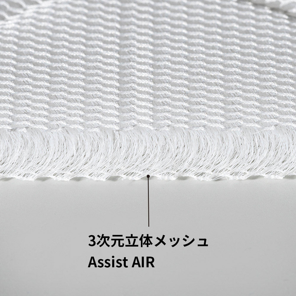 2層目の3次元立体メッシュAssist AIRが優れたクッション性で体圧分散。体への負担を軽減します。