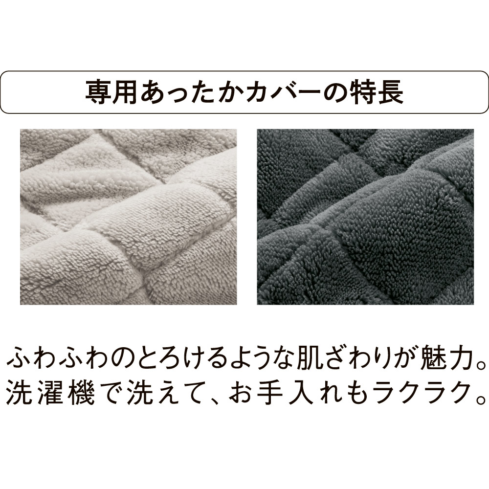 (ア)グレージュ(写真は約155×155cmラグ対応の専用あったかカバー) 裏かぶせ部分のストレッチ素材で、着脱簡単。たたんで収納できます。