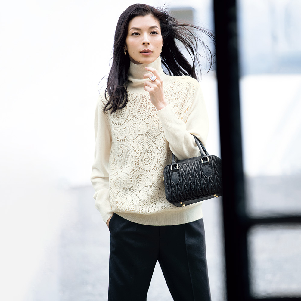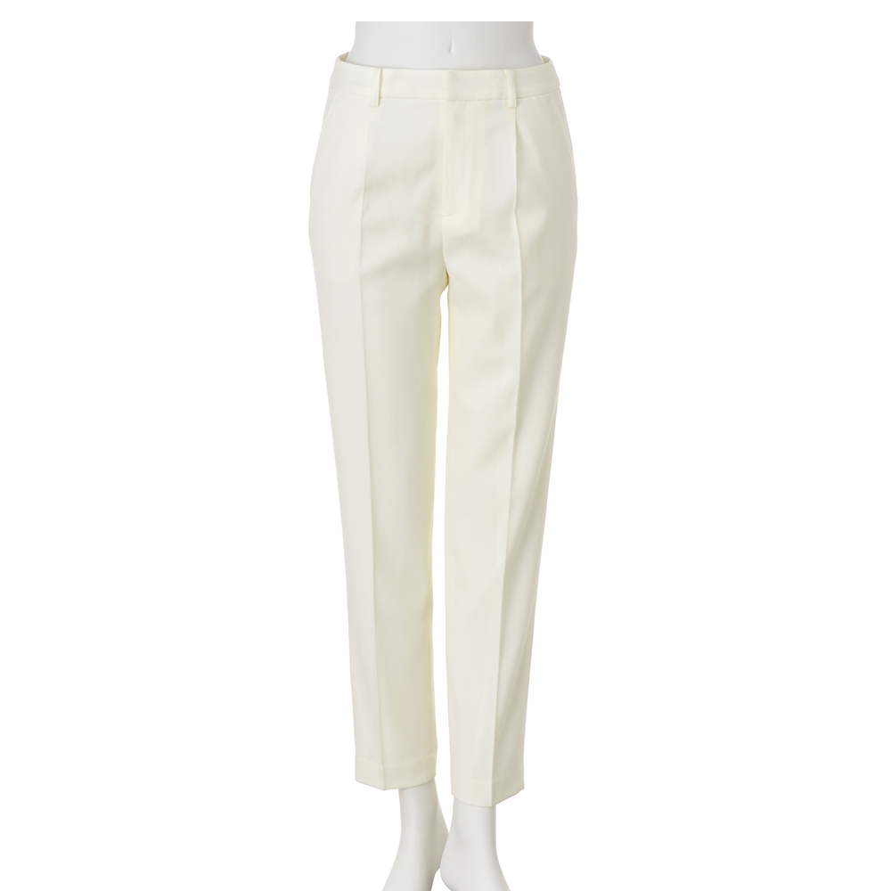 ELEGANCE CAREER 働く私を、軽やかに刷新!仕事だからと真面目すぎてはつまらない。冬も印象的な色や柄を軽やかに取り入れて、働く私をブラッシュアップ!働く女性の万能パンツ合わせるトップスを選ばず、装い全体を格上げする上質素材の細身テーパード。程良い肉厚感と微光沢を備えた生地は、尾州の老舗毛織物メーカー「西川毛織(株)」の名品ウールサキソニー。お腹周りにさりげないゆとりを持たせるワンタックからつなげたセンタープレスが、端正さと美脚見えに効果を発揮します。≫ POINT上質素材×テーパードシルエットで大人のきちんと感を支えるパンツは一本持っていると便利。今号は基本の2色展開で。