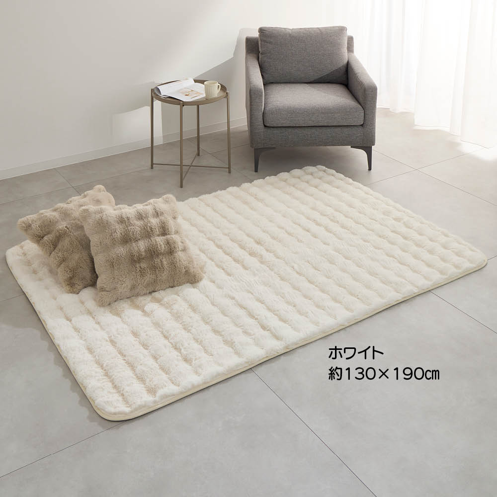 リッチで暖かなルックスと風合いが楽しめる上に、はっ水機能付きで水分汚れにも強いラグです。ラビットファー調で滑らかな肌触りは、冬場のひんやり防止にもぴったりです。お部屋に上品なぬくもりをプラス。華やかなコーディネートが楽しめる大人気の「ラパンリュクス」シリーズ。ラビットファーのような毛並みが美しいディノスのオリジナルブランド〈ラパンリュクス〉。同シリーズでアームなしタイプのソファカバーやラグ、クッションカバーもご用意。お好みで組み合わせて、統一感のある華やかなコーディネートをお楽しみください。空間を引き締める、シックなチャコール落ち着きのあるチャコールは、上質感とモダンな印象を演出。インテリアを大人っぽくまとめたい方におすすめのカラーです。インテリアにやわらかくなじむ、上品なグレージュニュアンスのあるグレージュは、どんなインテリアにも自然になじむ万能カラー。明るさと落ち着きを兼ね備え、空間をふんわりおしゃれに包み込みます。暖かみのある洗練のホワイトで、冬の空間をやさしく彩る新色ホワイトは、明るくやわらかな印象でお部屋に上品なぬくもりをプラス。同シリーズのクッションと合わせれば、統一感のある冬のおしゃれなコーディネートに仕上がります。うっかりドリンクなどをこぼしてもサッと拭き取れて美しい毛足をキープはっ水加工を施したふわふわのファー素材。飲み物などをこぼしてもしみ込みにくく、サッと拭き取れてお手入れ簡単。長くきれいにご愛用いただけます。