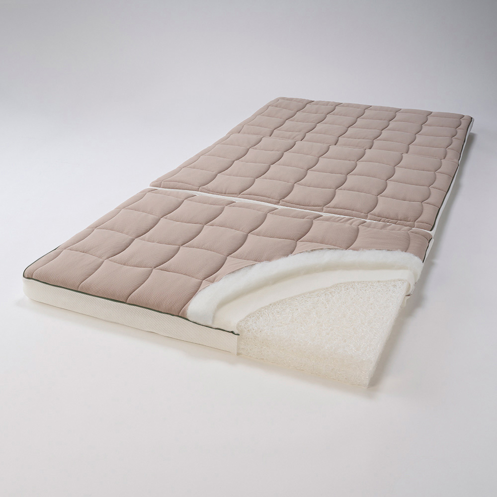 しっかりタイプのブレスエアー(R)素材を2枚使用したリッチな寝心地は、床置きでもベッドマットレスとしてもおすすめ。