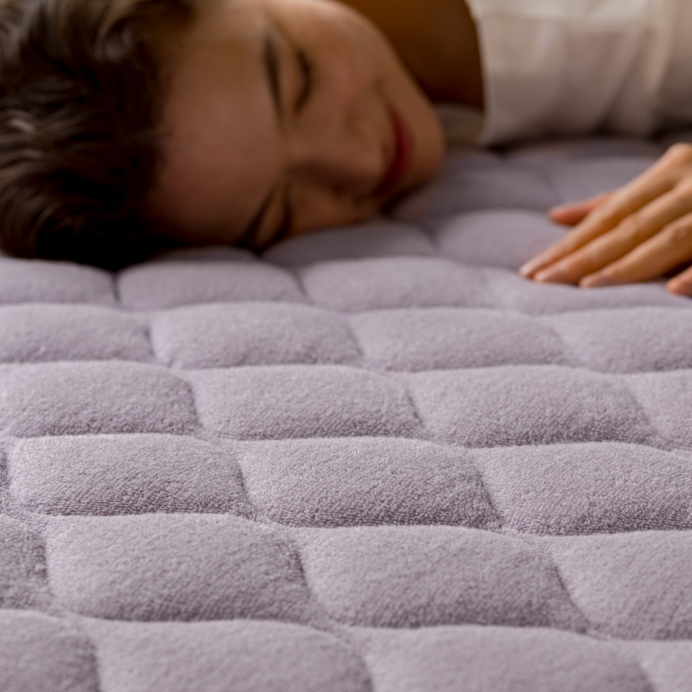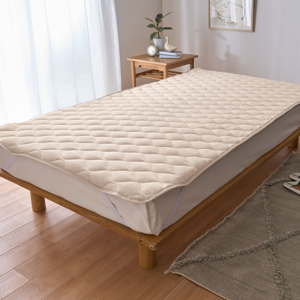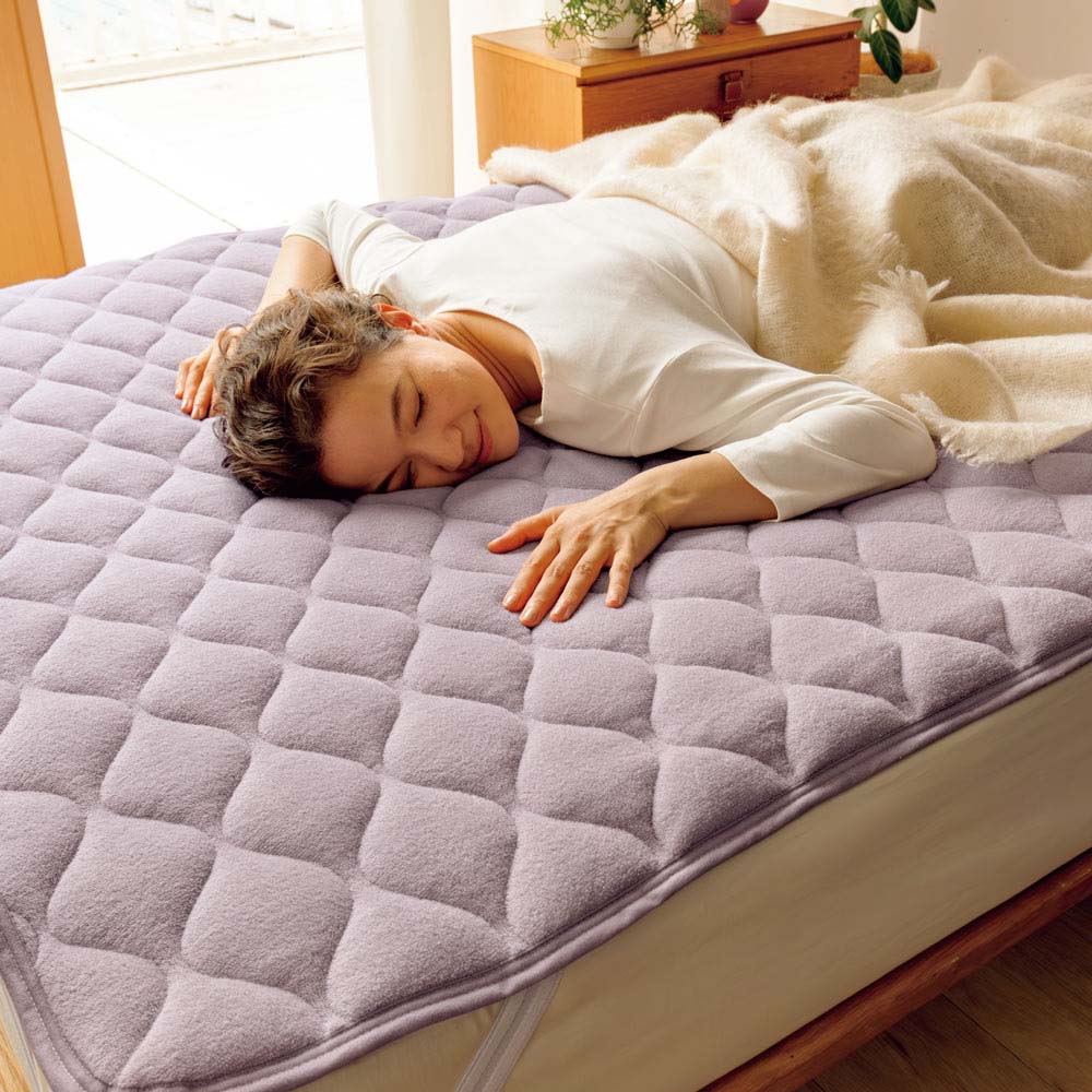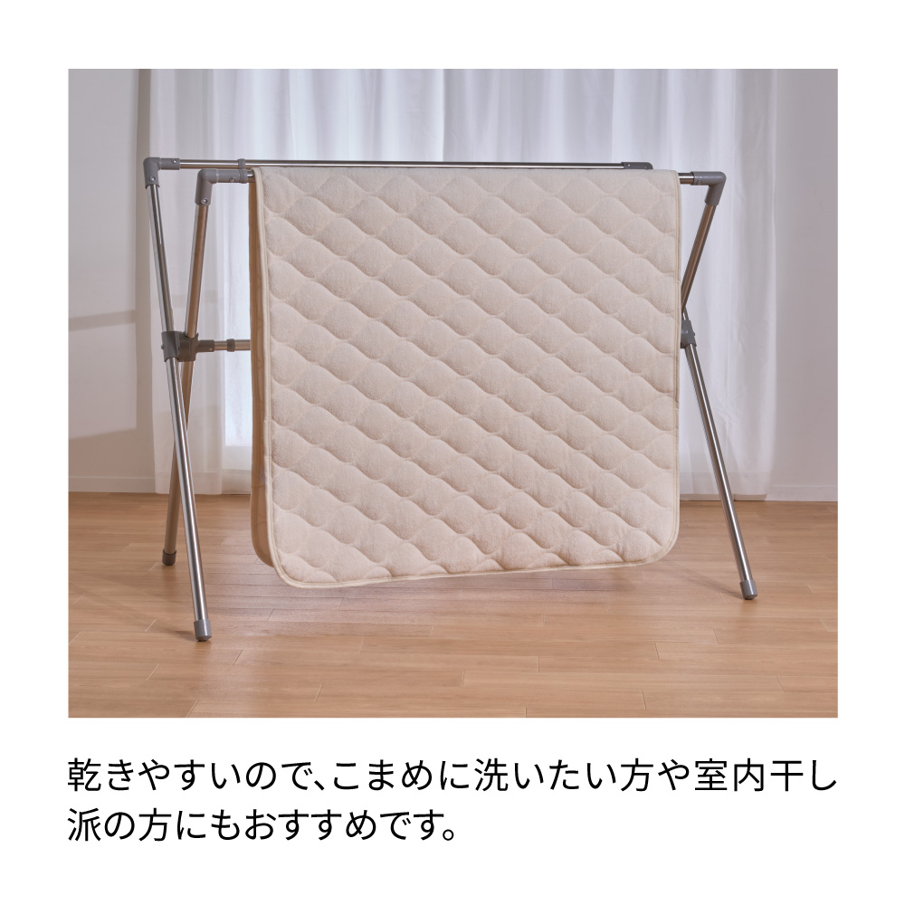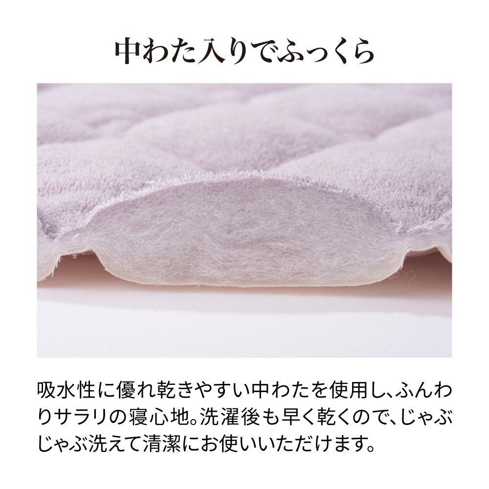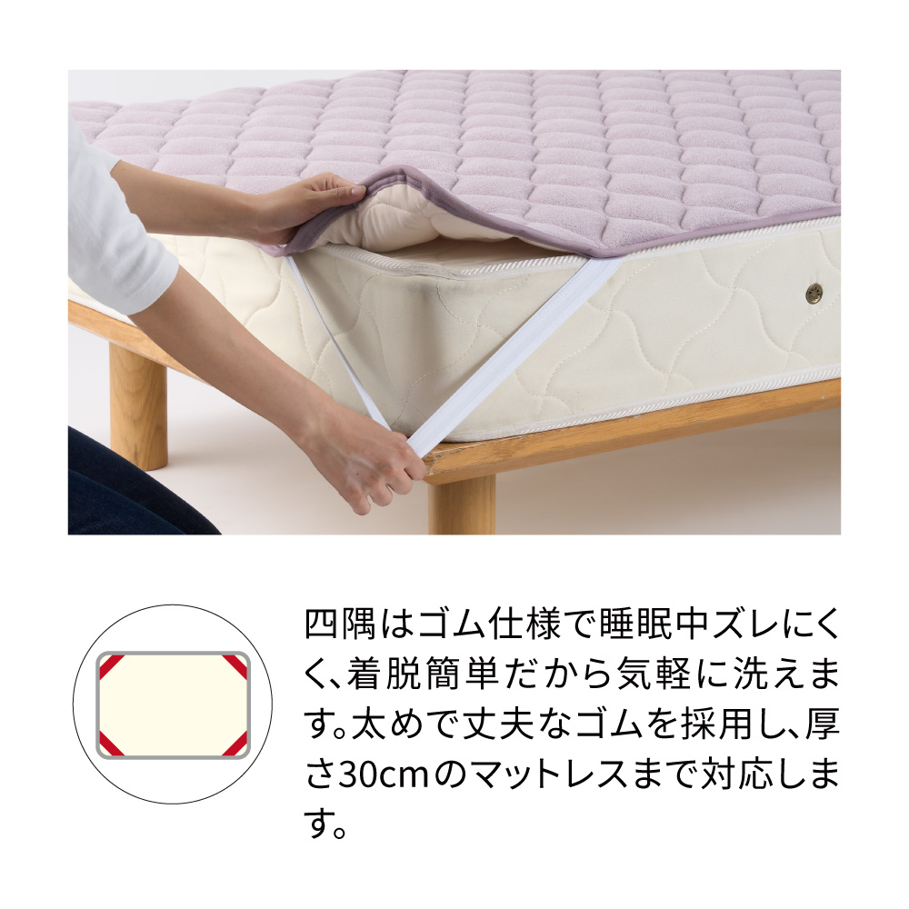 繊維業界も注目する浅野撚糸と、ディノスが共同開発!とびきり上質なタオル素材で仕立てた敷きパッドです。表生地には、特殊糸「スーパーZERO(R)」を使用し、驚きの柔らかさ。吸水性に優れ乾きやすい中わたを使用し、オールシーズンふんわりサラリ。リッチかつ爽やかな寝心地は、使う寝具に迷う季節の変わり目にもぴったりです。大ヒットメーカー浅野撚糸と夢のコラボ!全季節対応型ふわサラ敷パッド驚きのやわらかさと吸水性を誇る特殊糸「スーパーZERO(R)」を使用し、ふんわりリッチな寝心地と、汗をかいてもサラリと快適な肌ざわりを実現。乾きやすい中わたを使用し、洗濯後の乾きもスピーディ。スーパーZERO(R)を使用したやみつきの肌ざわり特許製法で作られた魔法の糸「スーパーZERO(R)」を使用し、とろけるようにやわらかな毛足が、空気をたっぷり含んでふわふわの風合い。ずっとふれていたくなる気持ちよさです。※特許番号5734280号スーパーZERO(R)とは?繊維業界も注目する浅野撚糸が開発した、やわらかさと吸水性に優れた特殊糸。販売数1900万枚を突破したメガヒットタオルの素材としても知られています。※「エアーかおる」の2007年6月〜2025年3月メーカー累計出荷数(浅野撚糸調べ)優れた吸水性でサラッと快適スーパーZERO(R)の持つふわふわのボリューム感は、吸水性の高さにもつながります。繊維の隙間に水分をたっぷり取り込むため、汗を素早くしっかり吸収。サラッと快適な肌ざわりが続きます。中わた入りでふっくら吸水性が高く乾きやすい中わたを使用し、ふんわりサラリの寝心地。洗濯後も早く乾くので、じゃぶじゃぶ洗えて清潔にお使いいただけます。サラサラふかふかの気持ちよさで、お使いの寝具の寝心地を手軽に底上げ。四隅はゴム仕様で睡眠中ズレにくく、着脱簡単だから気軽に洗えます。太めで丈夫なゴムを採用し、厚さ30cmのマットレスまで対応します。洗濯機で丸洗いできて乾きやすい!乾きやすく、汚れやニオイが気になったらじゃぶじゃぶ洗える。室内干しの方にもおすすめです。カラーは2色をご用意おしゃれな印象のムーングレーと、コーディネートしやすいアイボリー。まとめ買いすればお得にお買い求めいただけます。プレゼントにも、洗い替え用にもオススメです。