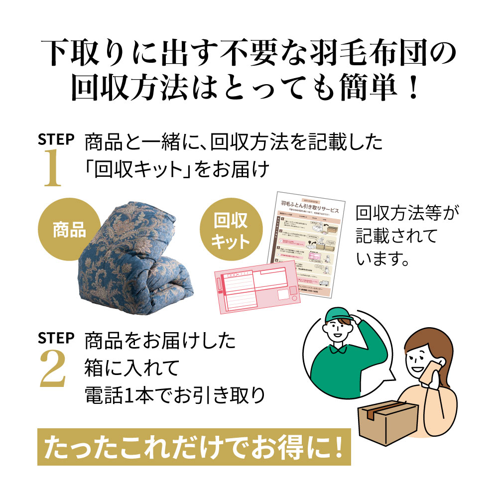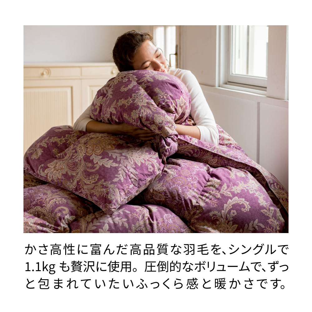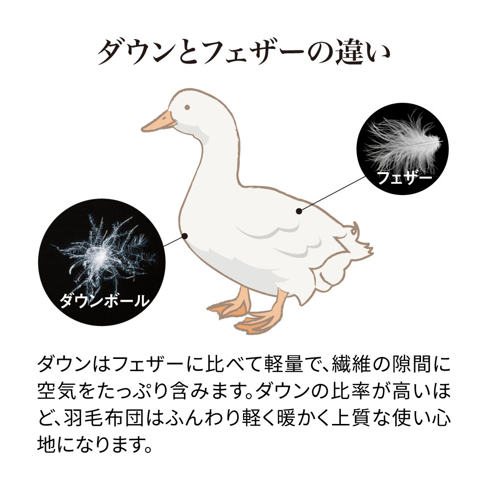 ハンガリー産高級羽毛をたっぷり使用した、コスパにも暖かさにも満たされる厳選羽毛布団。※本品は下取りなし・通常価格での販売です。ハンガリー産ダウンの上質な暖かさ世界有数の羽毛産出国であるハンガリーは、“ダウンベルト”と呼ばれる北緯50度前後の高緯度に位置しており、寒暖差の激しいこの地域に生息する水鳥は、厳しい寒さに耐えるための良質な羽毛を備えています。ダウン率90%の上質な暖かさダウンはフェザーに比べて軽量で、繊維の隙間に暖かい空気をたっぷり含みます。通常、ダウン率50%で羽毛布団と呼べるところ、本品はダウン率90%の高品質羽毛布団なので、ふんわり軽く暖かな掛け心地になります。5つ星・ロイヤルゴールドラベル取得の贅沢なボリューム感ゴールドラベルは、日本羽毛製品協同組合が発行する品質推奨ラベルの中でも、高い水準に合格した羽毛布団にのみ発行されます。本品はその中でも5つ星・ロイヤルゴールドラベルを取得しており、同じ重量でもかさ高性に富んだ本品の羽毛は、軽くボリューミーで空気をたっぷり含むため暖かさも格別です。ふっくら感の違いは一目瞭然3つ星ラベル羽毛布団と比べると、ボリューム感にこれほどの違いが。このふっくら感により、軽く暖かな掛け心地を実現しています。かさ高性に富んだ高品質な羽毛を、シングルで約1.1kgも贅沢に使用。圧倒的なボリュームで、ずっと包まれていたいふっくら感と暖かさです。高級感のある軽量な側生地羽毛のふくらみをつぶさない、軽量でしなやかな側生地を使用。ふっくら包んで、羽毛本来の軽さと暖かさを引き立てます。●下取りサービス利用で通常価格より10000円(税込)以上お得!不要な羽毛布団を処分するにもお金がかかる時代に、うれしい高額下取りサービスを付けたディノスだけの特別企画もご用意!※本品は下取りなし、通常価格での販売です。下取りサービス付きのご購入は「おすすめ関連商品」からお求めください。