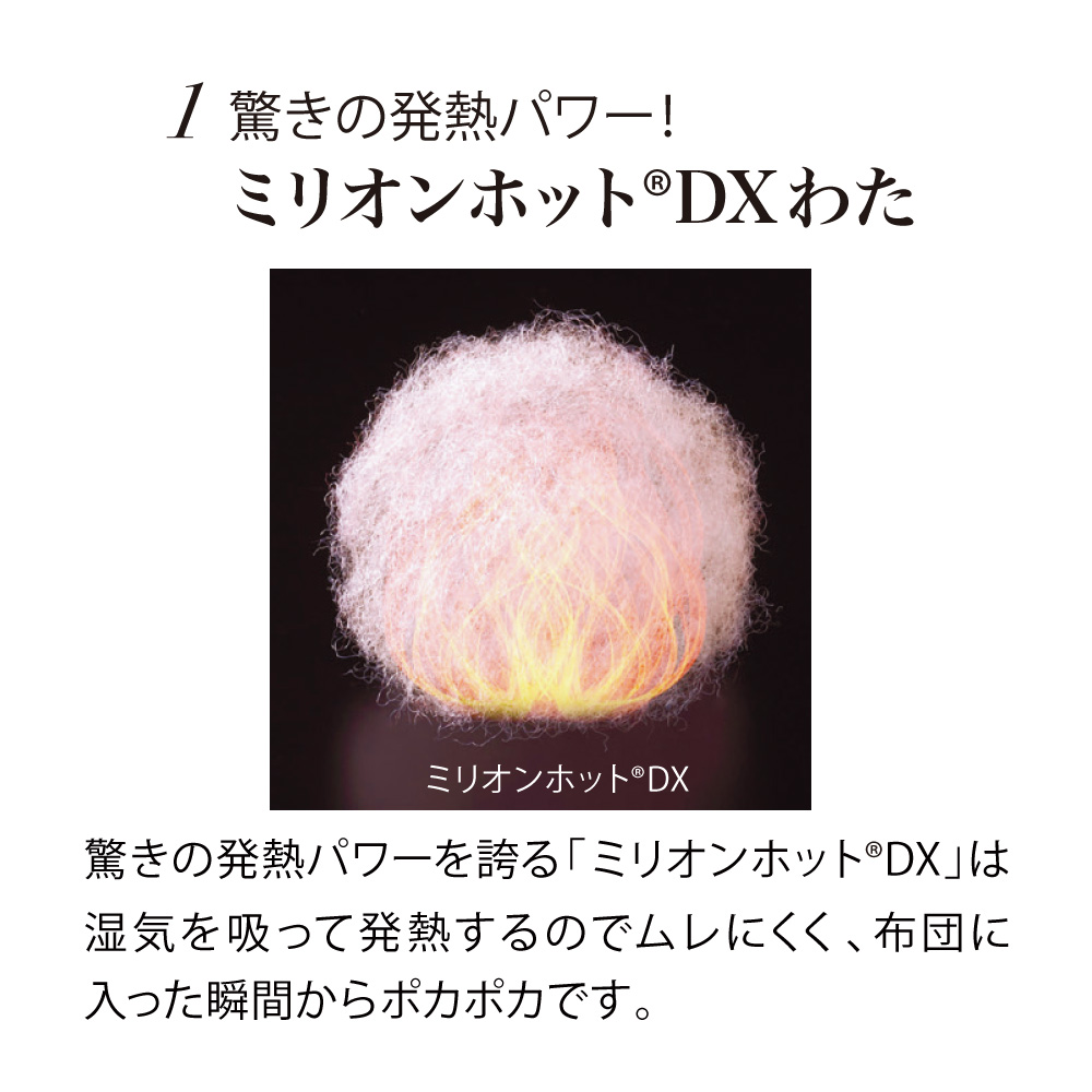 13年連続冬の販売数No.1(※1)を誇るヒートループ(R)シリーズのプレミアムバージョンです。包まれた瞬間から目覚めるまでずーっとぬくぬくの暖かさはそのままに、ラグジュアリーな風合いやルックスにもこだわりました。お得な掛け敷きセットなら、贅沢な肌ざわりと暖かさを全身でお楽しみいただけます!13年連続冬の販売数No.1(※1)を誇るヒートループ(R)シリーズのプレミアムバージョン!ヒートループ(R)プレミアム感動するほどあたたかく、抜け出せなくなる気持ちよさが人気のヒートループのラグジュアリーな風合いやルックスにもこだわったプレミアムバージョンです。※1 2012年〜2024年度10月〜3月のディノスの冬物寝具におけるシリーズ累計販売数 【プレミアムだけの特別感(1)】身も心もとろける高密度マイクロファイバー側地にはとろける肌ざわりの高密度マイクロファイバーを使用。中わたの温かさをより一層引き立てます。ドレープ性に優れているので寝返りをしてもはだけにくく快適です。 【プレミアムだけの特別感(2)】しっとりした使い心地生地に椿油加工を施しているため、乾燥が気になる冬もしっとりした使い心地。繊維の水分率が高まり、静電気が起こりにくくなります。 首元までとろりとフィットして暖かさで包み込む仕様ボディラインに沿うマーメイドフィットキルトと、デニール数の細いやわらかな中わたにより、身体にとろりとフィット。冷気をブロック・暖気をキープするから、至福の暖かさが続きます。暖かさのヒミツ「発熱→断熱→保温」のヒートループ(R)構造「あたたかさの源」となる「発熱わた」「アルミシート」「発熱生地」などあらゆる素材を組み合わせ、驚きのあたたかさと気持ちよさを実現。「発熱」「断熱」「保温」3つの効果が繰り返されることで、朝まであたたかく寝られます。 【発熱】ミリオンホット(R)DXわたによる驚きの発熱パワー「ミリオンホット(R)DXわた」は湿気を吸って発熱するので、暖かいだけでなく布団の中がムレにくく。さらに驚きの発熱パワーにより、布団に入ってすぐポカポカに。 【断熱】暖かさを閉じ込める、やわらか遮熱アルミ生地毛布上側とパッド下側に遮熱効果のある遮熱アルミ生地を使用し、厳しい冷え込みや床からの冷気をブロック。やわらかなアルミシートを採用することで肌沿いも◎。 【保温】空気の保温層であたたかさをキープするマイクロファイバー長い毛足が密集した、とろけるようになめらかな肌ざわりのマイクロファイバーが、空気の保温層を作り、あたたかさをしっかりキープします。 洗濯機で洗えて清潔布団をご家庭で洗濯する際は必ずお手持ちの洗濯機の説明書をご覧ください。メーカー・機種・容量により布団の洗濯ができない場合はクリーニング店、大型洗濯機のあるコインランドリー等での洗濯をおすすめします。