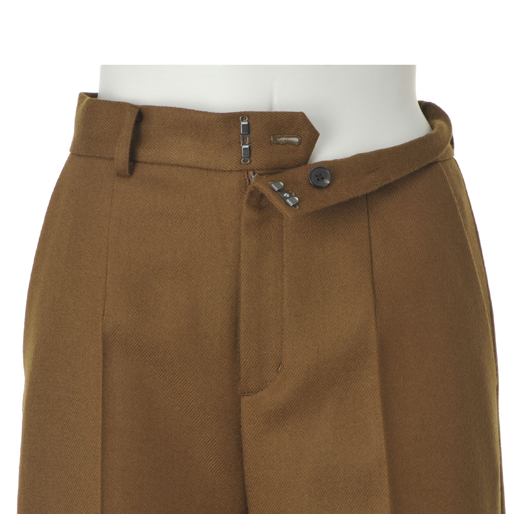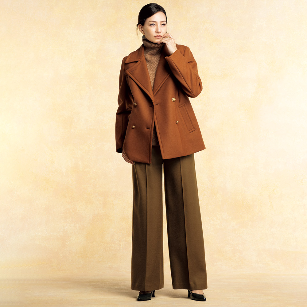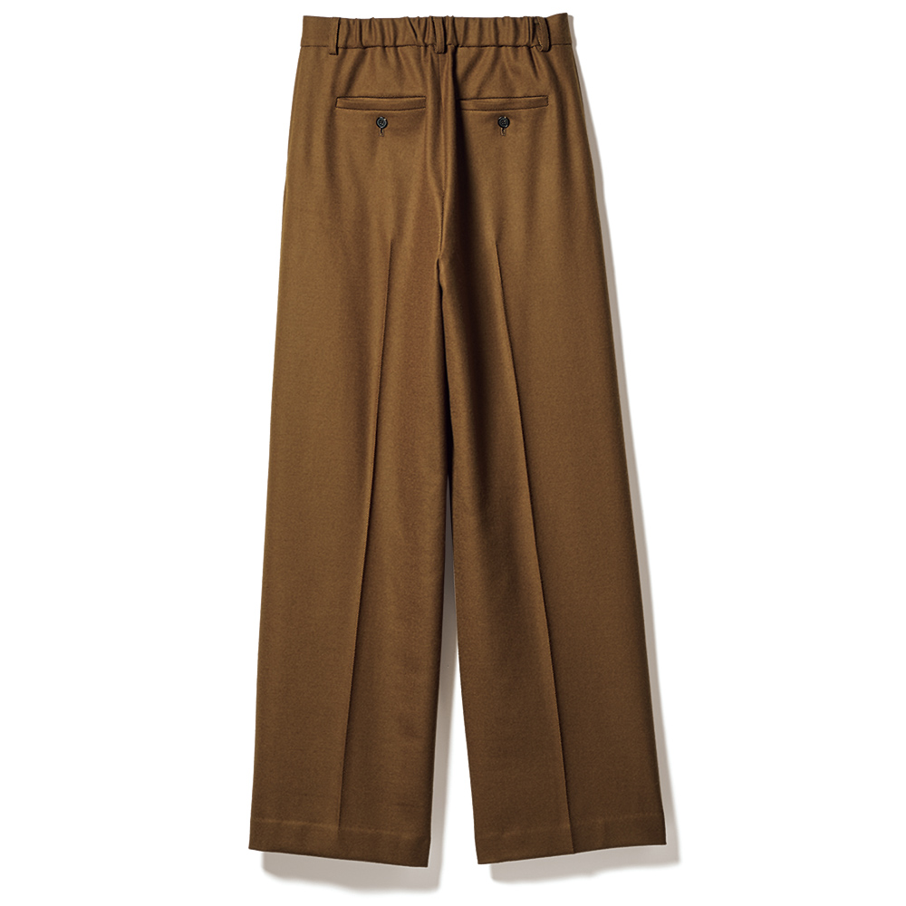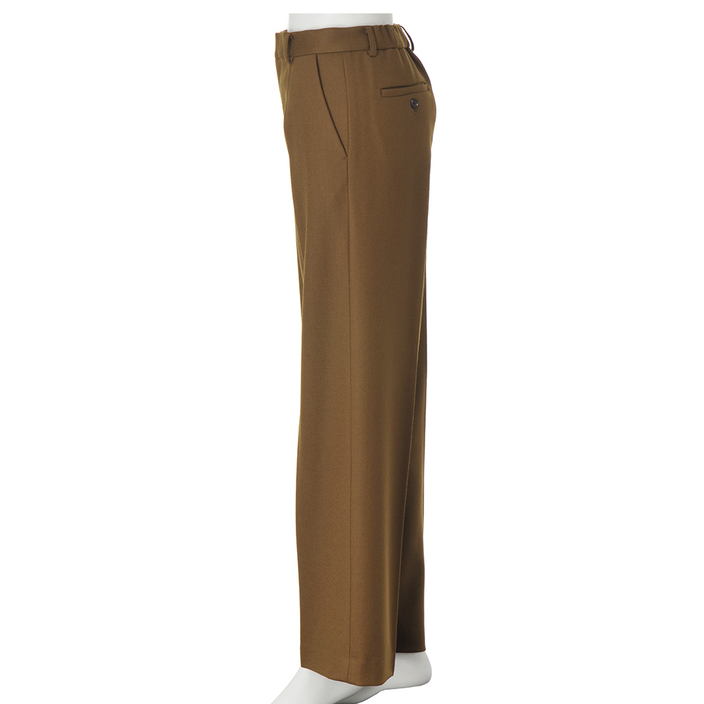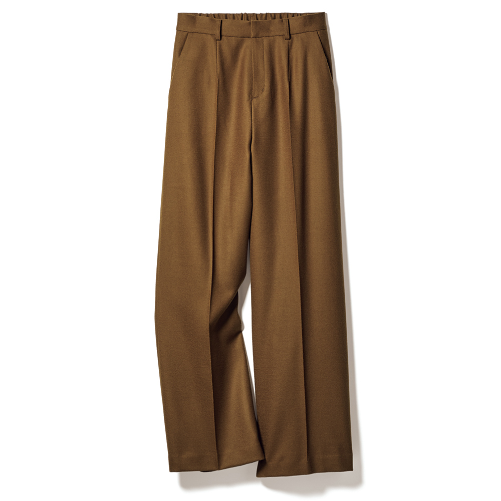 Trendy Colorマイスタイルが確立した大人の着こなしをさりげなく更新するなら、トレンドカラーに注目!深く、温かみのある色で、「今年の冬」を楽しんで。定番を成熟の領域に導くのがブラウン×ウールの優雅なコク整った綾目が印象的な尾州産ウール素材。スパイシーなブロンズブラウンは、トレンド感と大人に似合う深み、そして合わせやすさに拘ったDAMAコレクションの別注カラーです。腰周りはややタイト、裾に向かってほんのり広がるシルエットにセンタープレスをピリリと効かせた美脚効果もチェックポイント!ヒールにもフラットにもショートブーツにも好バランスで、シーンレスにお洒落を支えてくれます。≫ POINTセンタープレスでシャープさを印象づけたセミワイドシルエット。後ろウエストゴム仕様で着用感の良さを叶えています。