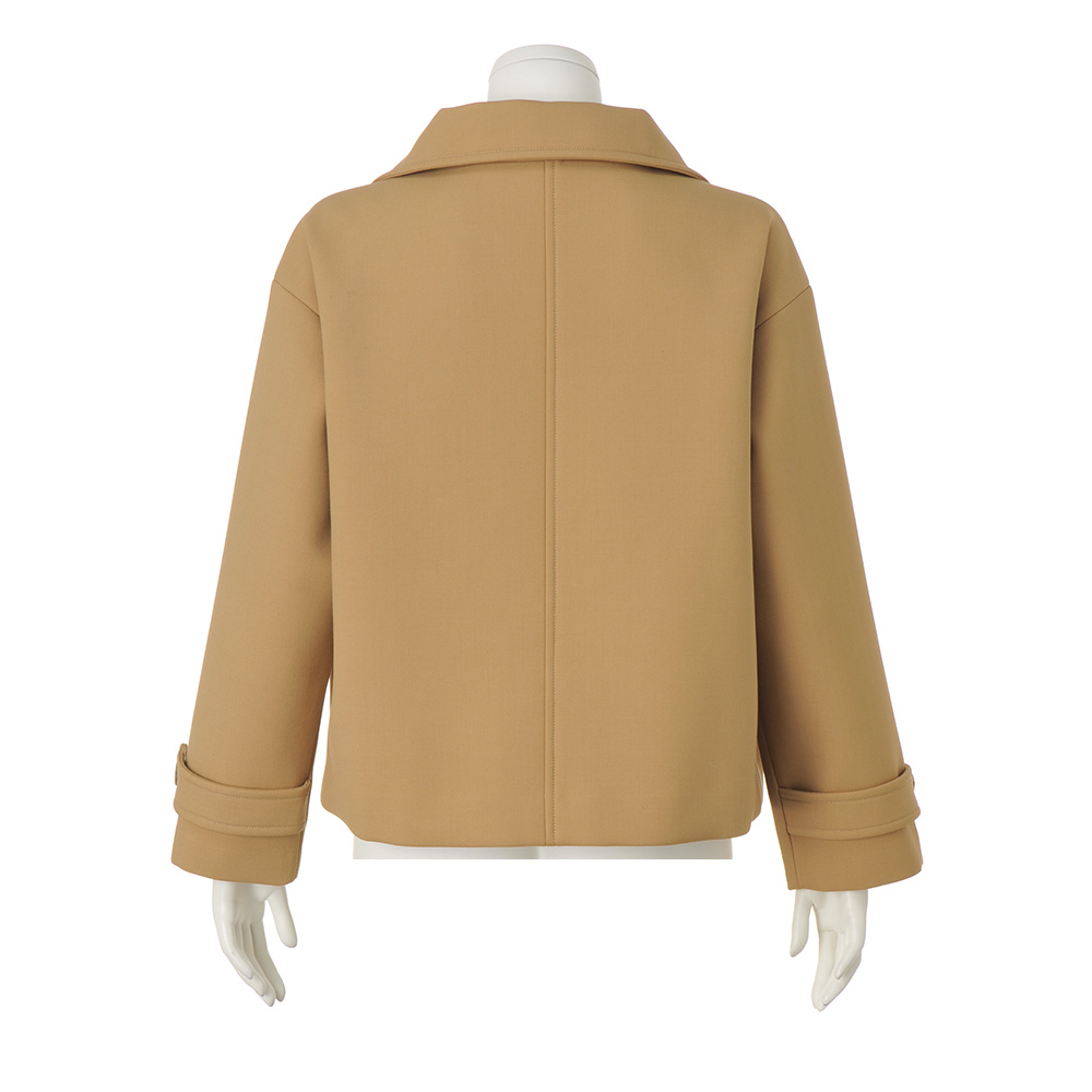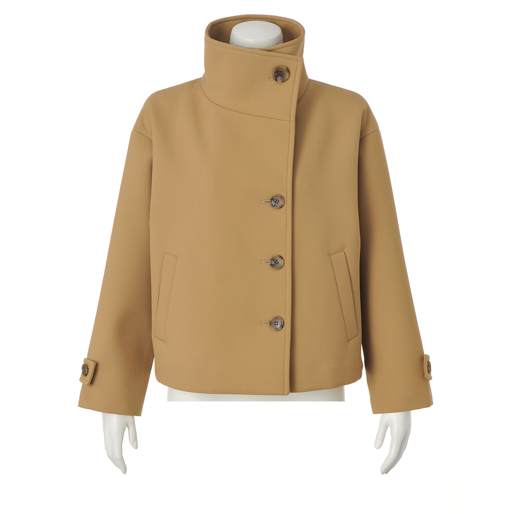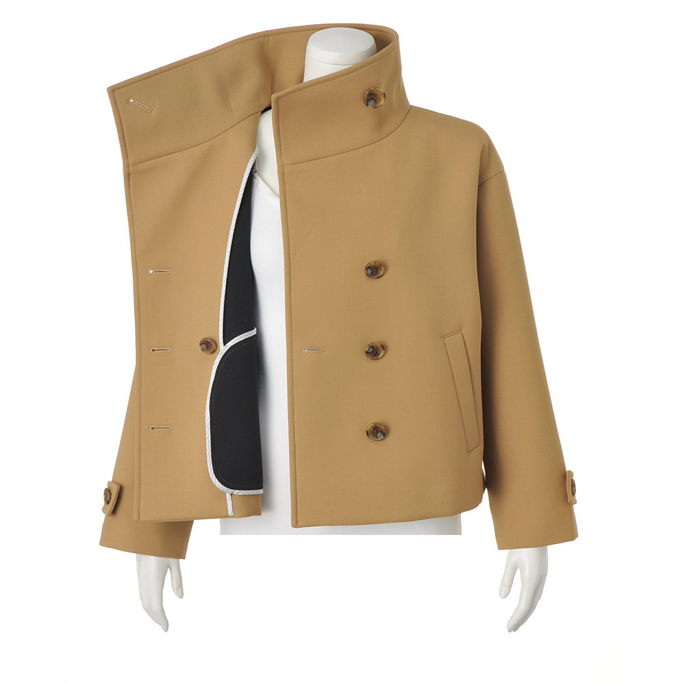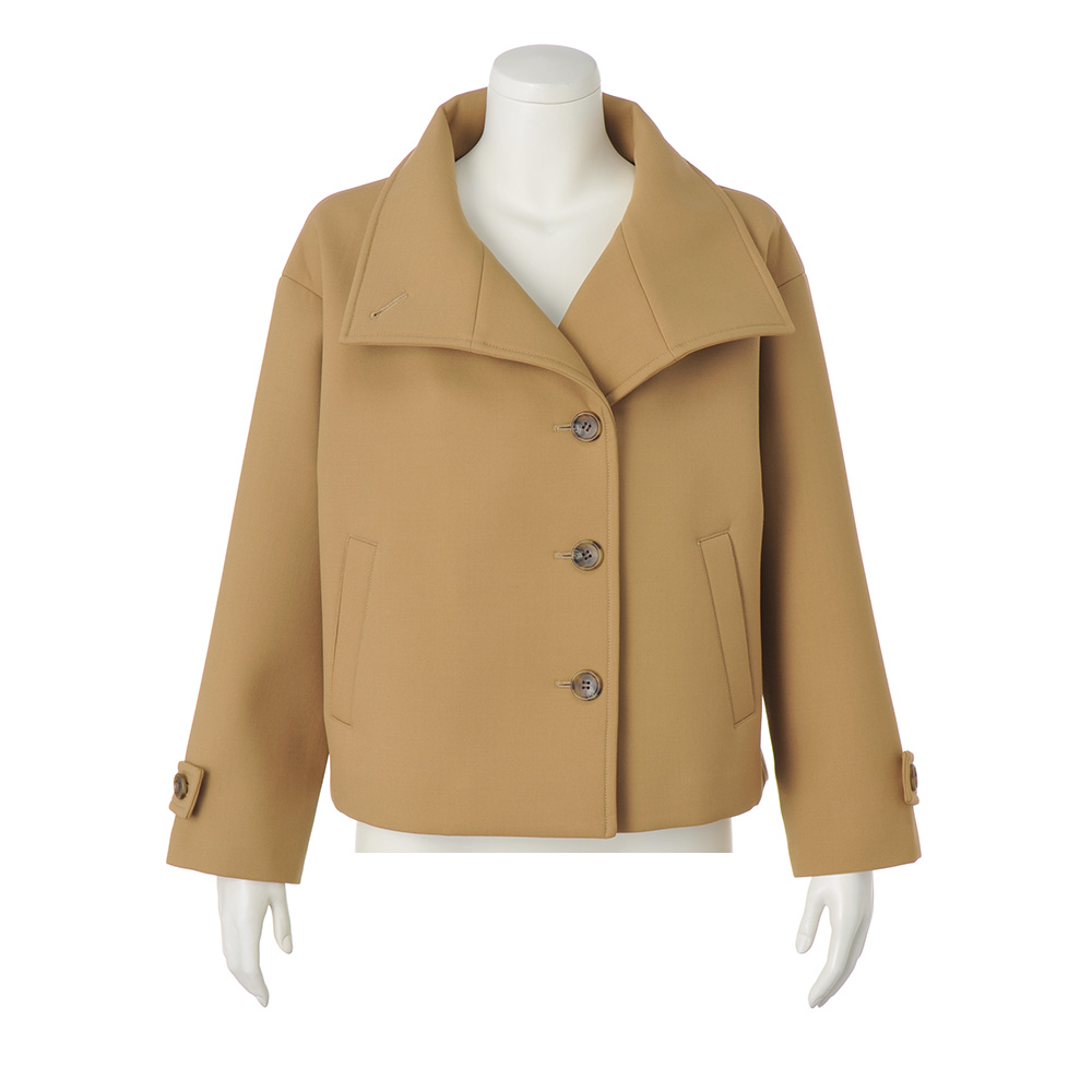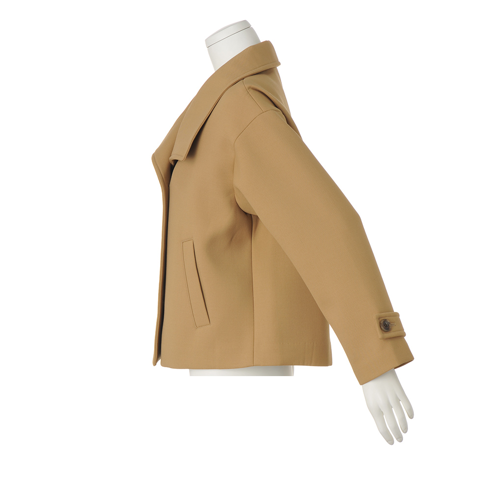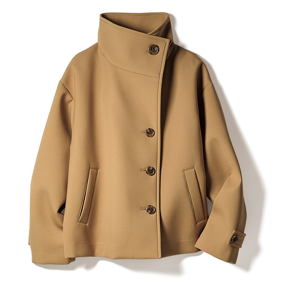 カジュアルこそ、品良く、軽やかに!軽く暖かな冬素材に女性らしいディテールを映したアイテムで、大人の毎日をさらに美しいものに。大人がコートに求めるのは軽さ、暖かさ、今っぽさ大人が着やすいクロップド丈でトレンドライクに着こなせるアウターを、軽くて暖かなボンディング素材で。表はキャメルの端正なウール混サキソニー、裏はブラックのスポンディッシュなダンボールジャージー。2種類の生地を貼り合わせた独特のハリ感と立体的なフォルムで、身体が入ってもすっきり着こなせます。存在感のある大きめな襟は、一番上のボタンの留め外しでクールなスタンドカラーにしたり、折り返したり、がらりと雰囲気を変えられます。ドロップショルダーとゆとりのあるサイズ感で中に合わせるものを選ばないのも、つい着たくなる理由。≫ POINTキャメルのサキソニー×ブラックのダンボールジャージーの配色ボンディング。裏側の縫い代はストライプ生地のパイピング始末で細部まで拘って。