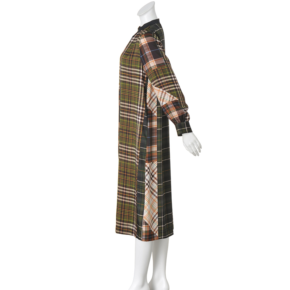 エリカ社 パッチワーク風チェック シャツワンピース マキシワンピース ロングワンピース ワンピース 129201