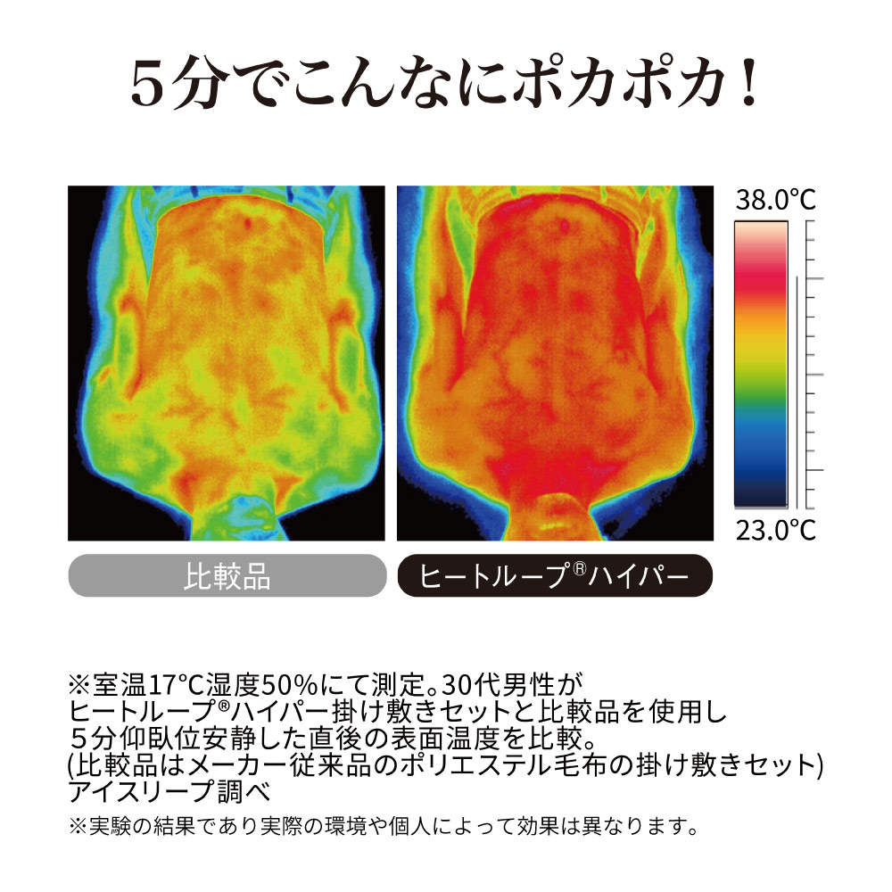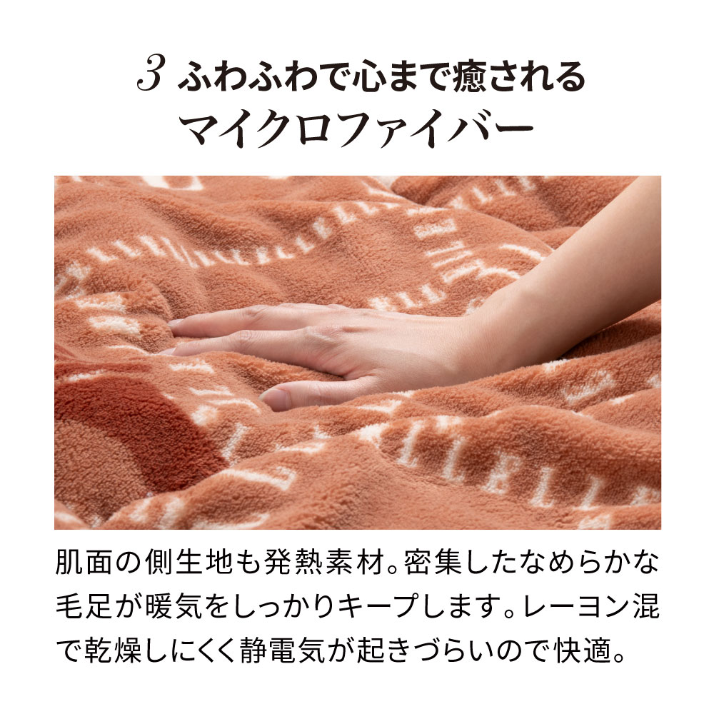 “電気のいらない発熱寝具”の驚異的な暖かさはそのままに、寝室を美しく彩るELLE HOMEデザインのヒートループ(R)です。パリの街の地図をモチーフにした心躍る柄を、フレンチシックな色味で表現。同柄の毛布とのコーディネートもおすすめ。暖かさと素敵さの両方を叶えてくれる冬寝具です。フレンチシックなぬくもりに包まれる ELLE HOME ヒートループ(R)ハイパーディノスの人気No.1冬寝具「ヒートループ(R)」シリーズ。”電気のいらない発熱寝具”の驚きの暖かさはそのままに、愛されてやまない「パリジェンヌ」スタイルブランド『ELLE』の設立80周年を記念して、「ELLE HOME」からパリの街をイメージしたディノススペシャルデザインが登場!ELLE HOMEとはELLEは、1945年にファッション誌として創刊し、80周年を迎えました。自分のライフスタイルを大切にし望む人生を歩みたいすべての女性たちの指針になれるよう、ファッションからビューティ、カルチャーそしてエクスペリエンスに至る総合的なライフスタイルブランドとして、あらゆる女性たちの生活に寄り添う独自の「パリジェンヌスタイル」を提供しています。そのホームデコレーションブランドが『ELLE HOME』です。 ELLEブランド設立80周年を記念してパリの街をイメージしたディノススペシャルデザイン。ELLEならではの色彩豊かで高級感のあるデザインが美しく映えます。パリの地図が"ELLE"の文字で表現されていて、遊び心のあるデザインにときめきます。 感動のあたたかさと、とろける肌ざわりディノスのロングセラー冬寝具「ヒートループ(R)」は、発熱・断熱・保温を繰り返す独自構造で感動するほどあたたかく、肌ざわりもなめらか。抜け出せなくなる気持ちよさです。 あたたかさの秘密は、ヒートループ(R)シリーズこだわりの三層ループ構造「あたたかさの源」となる「発熱わた」「アルミシート」「発熱生地」などあらゆる素材を組み合わせ、驚きのあたたかさと気持ちよさを実現しました。「発熱」「断熱」「保温」3つの効果が繰り返されることで、朝まであたたかく寝られます。※画像は無地タイプのグレーです。 5分でこんなにあたたかい。※1「発熱→断熱→保温」のあったかループ効果によりわずか5分で速暖!暖房いらずで電気代を節約でき、乾燥対策にも。さらにお布団に入った時のヒヤっと感もありません。 驚きの発熱パワー!ミリオンホット(R)DXわた&発熱生地驚きの発熱パワーを誇る「ミリオンホット(R)DX」は湿気を吸って発熱するのでムレにくく、布団に入った瞬間からポカポカです。中わただけでなく肌面の側生地も発熱素材を採用! あたたかさを閉じ込める!やわらか遮熱アルミ生地ケット上側と敷きパッド下側に断熱効果のある遮熱アルミ生地を使用し、寒さや底冷えをブロック。やわらかなアルミシートなので肌沿いも◎。ふわふわマイクロファイバーで保温表面はふんわりなめらかなマイクロファイバー生地。長い毛足が密集した、とろけるようになめらかな肌ざわりのマイクロファイバーが、空気の保温層を作り、あたたかさをキープします。