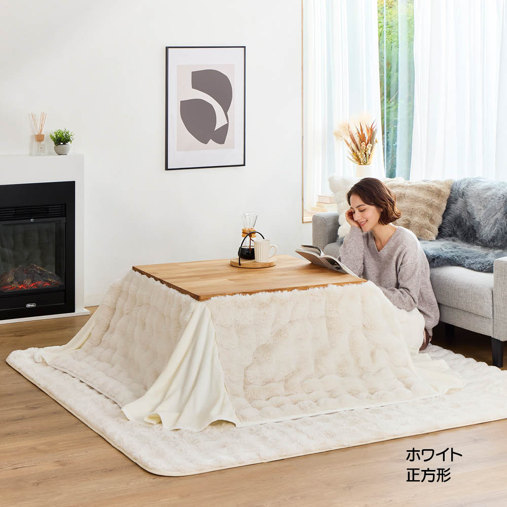 • (ウ)ホワイト・長方形 ふんわりファーに包まれる贅沢。冬の主役こたつ布団