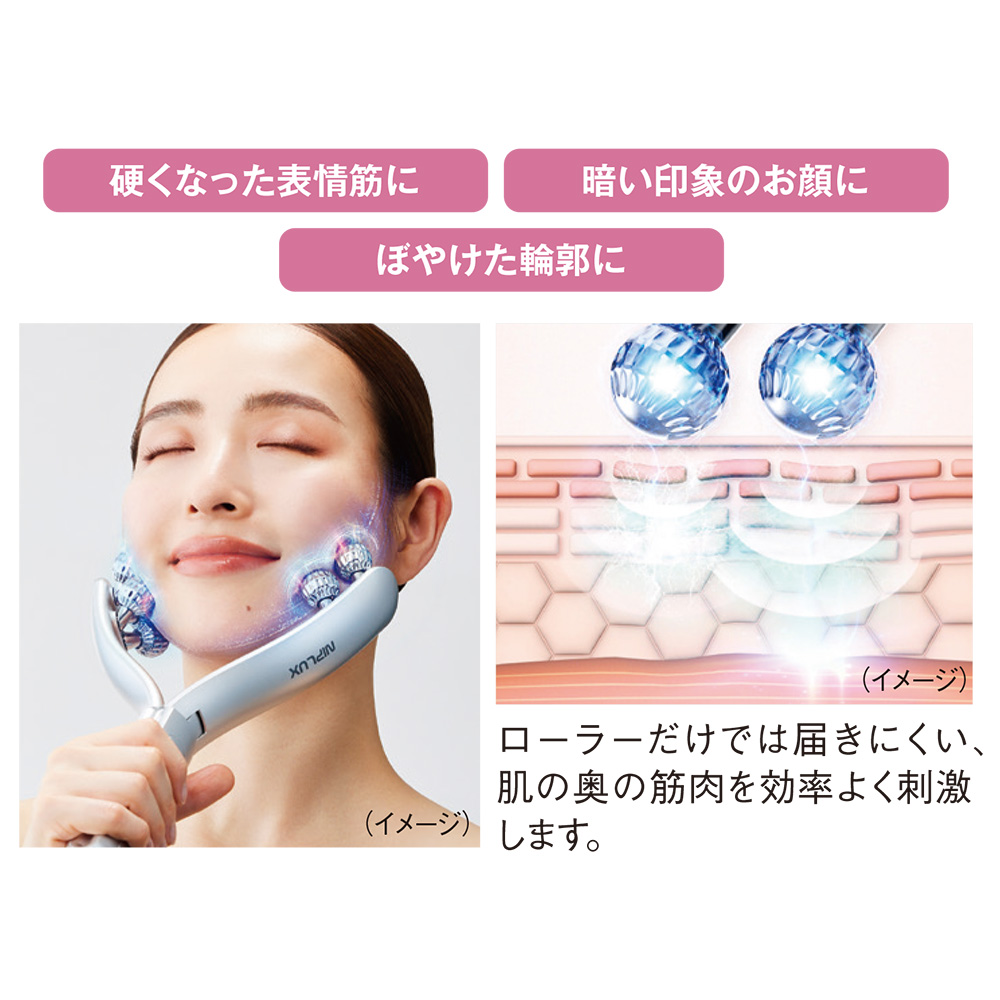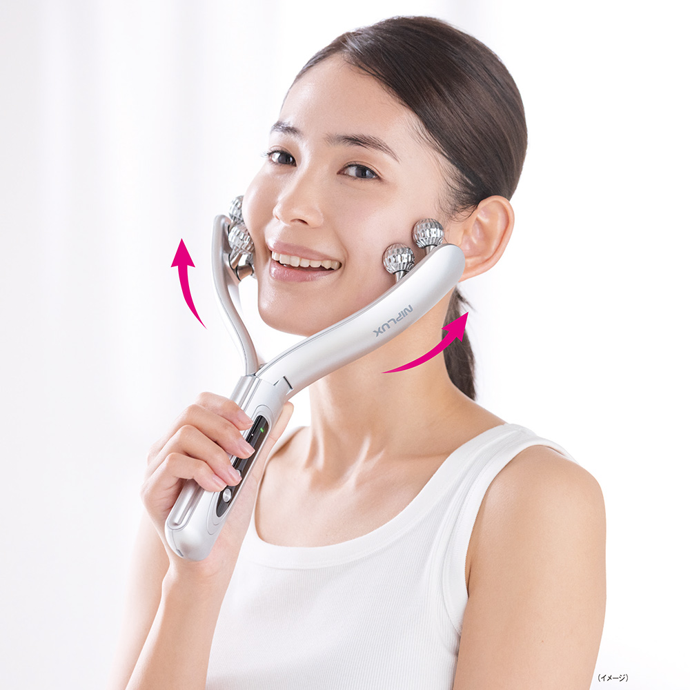 “左右対称”美顔を目指すリフトケア*ローラー左右対称に攻める美顔ローラー誕生!美顔の条件のひとつは左右対称であること。対称性の高い顔は、明るくすっきりした印象を与えます。けれど年齢や寝る姿勢、噛みぐせなどによって片側に偏った力がかかると、バランスが崩れる原因に…。そこで「ベローラ」は左右均一に圧をかけてケアできるよう設計にこだわり開発されました。■Y字開閉型で左と右が偏ることなく均一ケア顔の形に沿って左右のアームが連動し、最適な角度で開閉。左右のローラーが同時に回転するので、方向と圧を一定に保ち左右対称ケアが可能に。■フェイスラインに沿って広く一気にケアできる8個のローラー均一に圧をかけてケアできるように正円形を採用した8個のローラーによりワンストロールで広い面を一度にケア。何度も往復する必要がなく、効率的なお手入れが叶います。指先で優しくつまみ流すエステティシャンの手技を応用しました。■EMSテクノロジーで表情筋にアプローチ独自のEMSを搭載することで、ローラーだけでは届きにくい筋肉の深部まで効率よく刺激。表情筋にアプローチし、左右対称にリフトケア*します。■RF(ラジオ波)で本格フェイシャルケア高周波やラジオ波とも呼ばれ、エステなどでも使われるケアを搭載。振動させると熱を発生する性質を利用して肌に働きかけます。肌を温めることでエステのようなハリ・ツヤ・キメケアが可能に。じんわりした温かさが感じられます。*機器を上に動かし持ち上げること