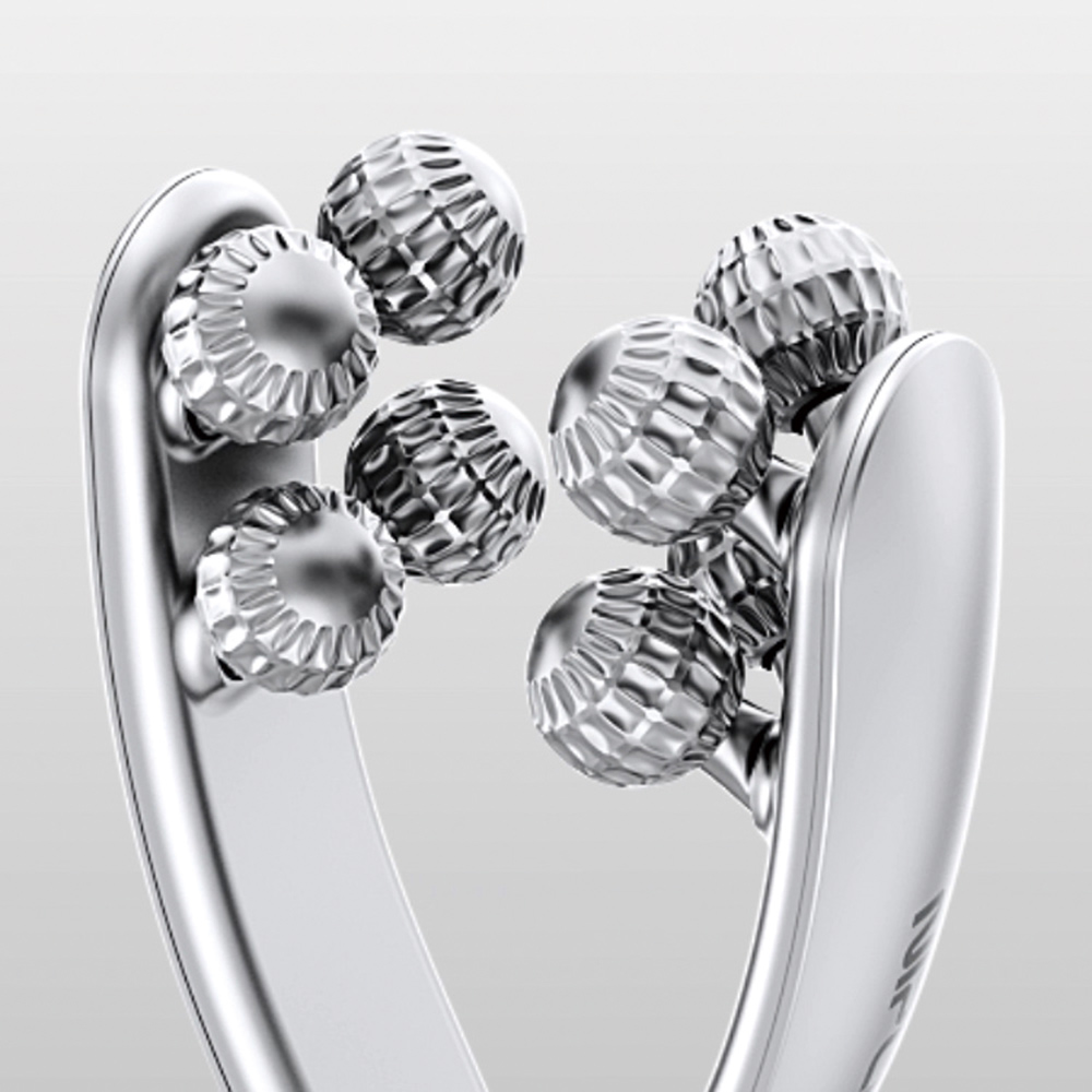 均一に圧をかけてケアできるように正円形を採用した8個のローラー