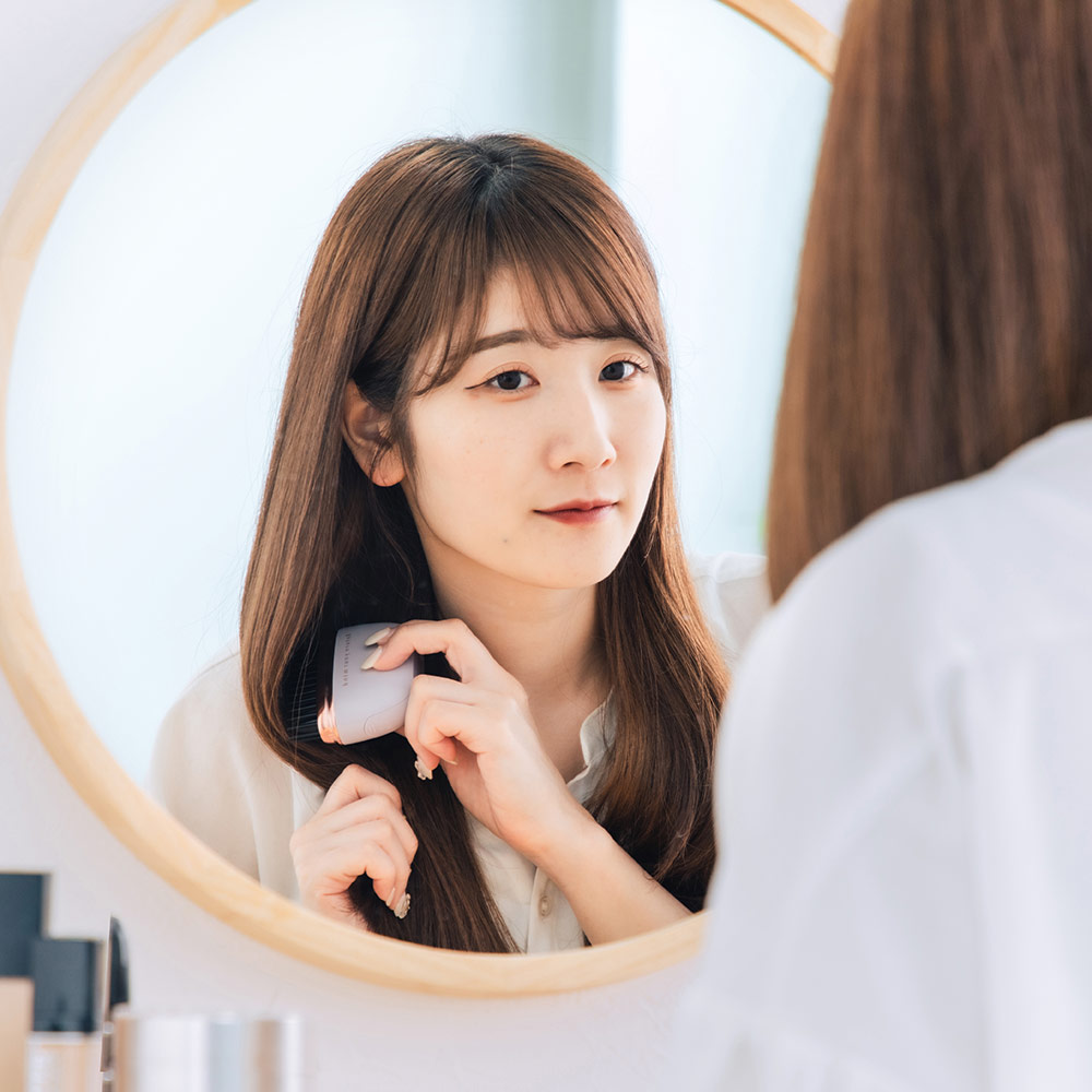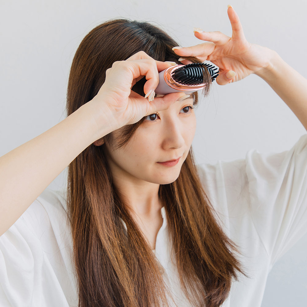 コンパクト、超軽量、コードレス!外出先で使えるヘアアイロンコードレスだからお出かけ先でもささっと直せますヘアアイロンを持ち運びたい!という方におすすめ。コロンと丸いかわいいフォルムはポーチに入るくらいコンパクトで、スマホより軽いかも。コンパクトで持ちやすい独自のコーム型熱源プレートが約50秒で180度まで温まり、メイク直し感覚でクセやうねりをささっと直せます。独自のコーム型プレートでブラッシング感覚でセットが叶います。前髪から髪全体のツヤだし、ボリュームアップまで、これ1台で。