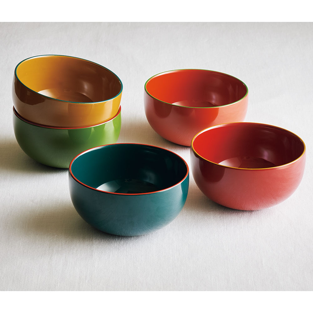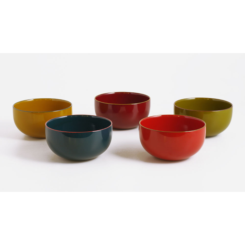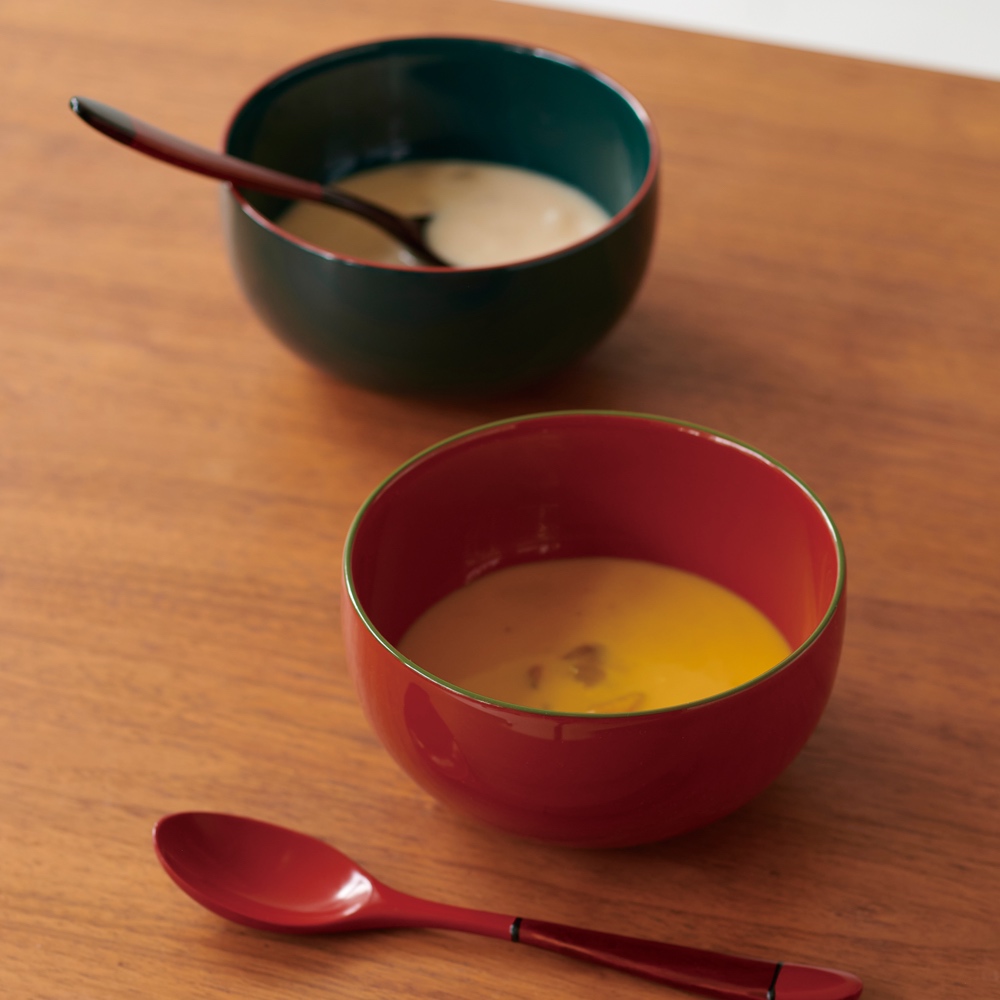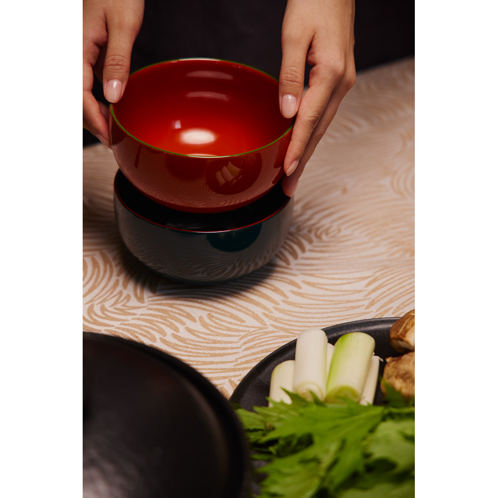 漆器の美しさと使い勝手の良さを実感していただける、京都の老舗の新しい漆器ボウルです。暮らしに寄り添う、伝統色の漆ボウル現代の生活空間にも違和感なくおしゃれに使っていただきたい。そんな思いから、元々漆商であった井助のこだわりのもと、日本の伝統色を取り入れた漆の色合いを追求した「IRO-IRO」シリーズのボウルです。和も洋もこれ一つ!自由な盛り付けが楽しめる麺や丼もの、味噌汁、スープ、煮物、さらにシリアルやデザート、ヨーグルトなど、和食・洋食を問わず幅広い料理を美しく盛り付けられるボウル。一つあるだけで、毎日の食卓がぐっと便利で豊かになります。手にすれば分かる、漆器ならではの使い心地ハレの日のイメージが強い漆器ですが、実は日常使いにもぴったり。木粉と樹脂を成型した現代の漆器は、伝統の美しさと現代の実用性を兼ね備えています。優れた断熱性を持ち、熱いスープも安心して持てるのが特長です。また、木製漆器よりも軽量で耐久性に優れているため、日々の食卓で扱いやすく長くお使いいただけます。一度使えば、その快適さと使いやすさにきっと驚かれることでしょう。組み合わせ自由自在。食卓がもっと楽しくなるスタイルを選ばないシンプルなデザインで、どんな食器セットにもすっと溶け込みます。鍋物の取り皿にもおすすめです。伝統色と現代感が融合した、美しい漆器日本の伝統色にこだわった本体色と、縁のアクセントカラーが絶妙に調和し、ツヤ感あふれる美しい仕上がりです。漆器本来の「潤い」も感じていただける、普段使いにもぴったりの日本製ならではの上質な器です。記念日や贈り物に最適!色で選ぶ特別な贈り物豊富な6色のカラーバリエーションは、色違いをペアにして贈るのもおすすめです。ご結婚祝いや銀婚式・金婚式など、ご夫婦の記念日ギフトにぴったり。化粧箱入りなので、そのまま贈れるのも嬉しいポイントです。色選びを楽しむリピーターも多く、美しいバリエーションが魅力です。京都で190年続く老舗の技と美、井助のオリジナル漆器漆器の井助は、約190年前の文政年間に京都で創業した漆の老舗です。漆や塗料の専門知識と経験を活かし、オリジナル漆器の企画・販売も手掛けています。みやけかずしげデザイナーとのコラボにより誕生した「IRO-IRO」シリーズは、伝統と現代デザインが調和した逸品です。