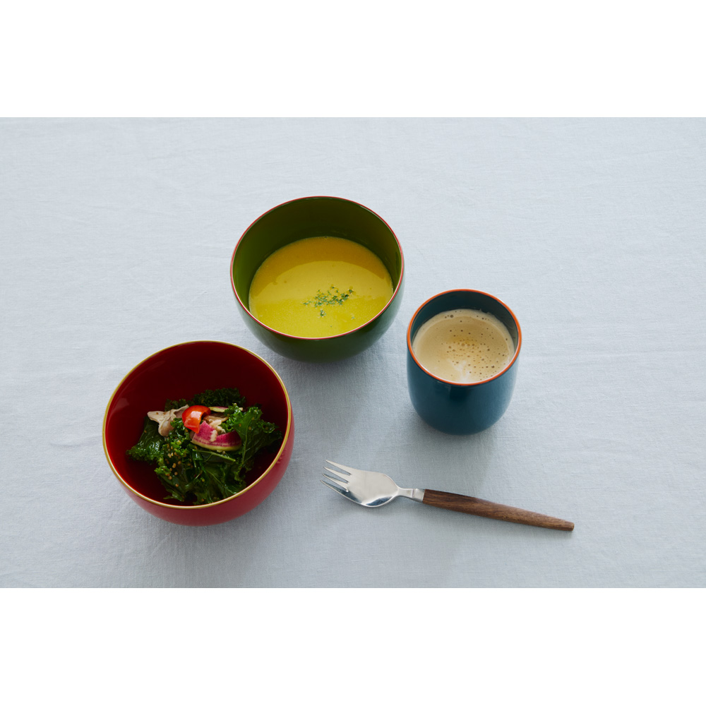 どんな料理にも華を添える漆器の新しいスタンダード。現代空間に溶け込む、日本伝統色の漆カップ現代の生活空間にも違和感なくおしゃれに使っていただきたい。そんな思いから、元々漆商であった井助のこだわりのもと、日本の伝統色を取り入れた漆の色合いを追求した「IRO-IRO」シリーズのカップです。たっぷり入る大きめサイズで幅広く活躍大きめサイズのカップはたっぷりのお茶はもちろん、スープやカフェオレなどにもぴったり。毎日の食卓でさまざまなドリンクや料理に使えて、実用性も抜群です。※お届けは右のカップ(ブルー)です手にすれば分かる、漆器ならではの使い心地ハレの日のイメージが強い漆器ですが、実は日常使いにもぴったり。木粉と樹脂を成型した現代の漆器は、伝統の美しさと現代の実用性を兼ね備えています。優れた断熱性を持ち、熱いお茶も安心して持てるのが特長です。また、木製漆器よりも軽量で耐久性に優れているため、日々の食卓で扱いやすく長くお使いいただけます。一度使えば、その快適さと使いやすさにきっと驚かれることでしょう。※お届けは右のカップですどんな食卓にも馴染むシンプルデザインスタイルを選ばないシンプルなデザインで、和洋を問わず幅広い食器とコーディネートできます。毎日の食卓にすっと溶け込み、いつもの食器とも自然にマッチします。伝統色と現代感が融合した、美しい漆器日本の伝統色にこだわった本体色と、縁のアクセントカラーが絶妙に調和し、ツヤ感あふれる美しい仕上がりです。漆器本来の「潤い」も感じていただける、普段使いにもぴったりの日本製ならではの上質な器です。記念日や贈り物に最適!色で選ぶ特別な贈り物豊富な6色のカラーバリエーションは、色違いをペアにして贈るのもおすすめです。ご結婚祝いや銀婚式・金婚式など、ご夫婦の記念日ギフトにぴったり。化粧箱入りなので、そのまま贈れるのも嬉しいポイントです。色選びを楽しむリピーターも多く、美しいバリエーションが魅力です。京都で190年続く老舗の技と美、井助のオリジナル漆器漆器の井助は、約190年前の文政年間に京都で創業した漆の老舗です。漆や塗料の専門知識と経験を活かし、オリジナル漆器の企画・販売も手掛けています。みやけかずしげデザイナーとのコラボにより誕生した「IRO-IRO」シリーズは、伝統と現代デザインが調和した逸品です。