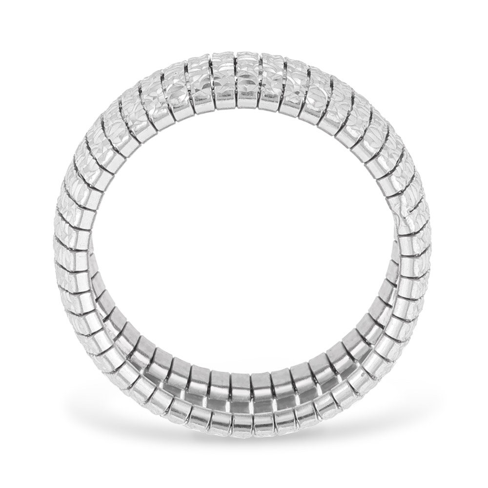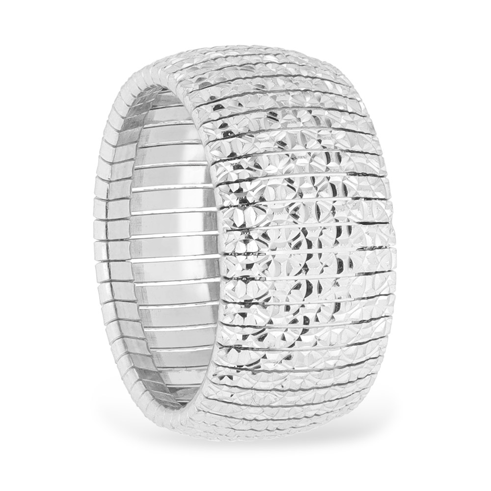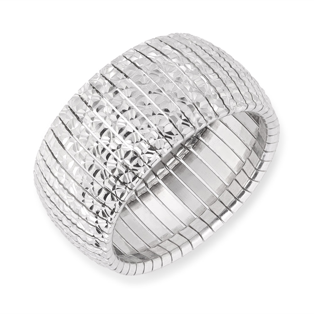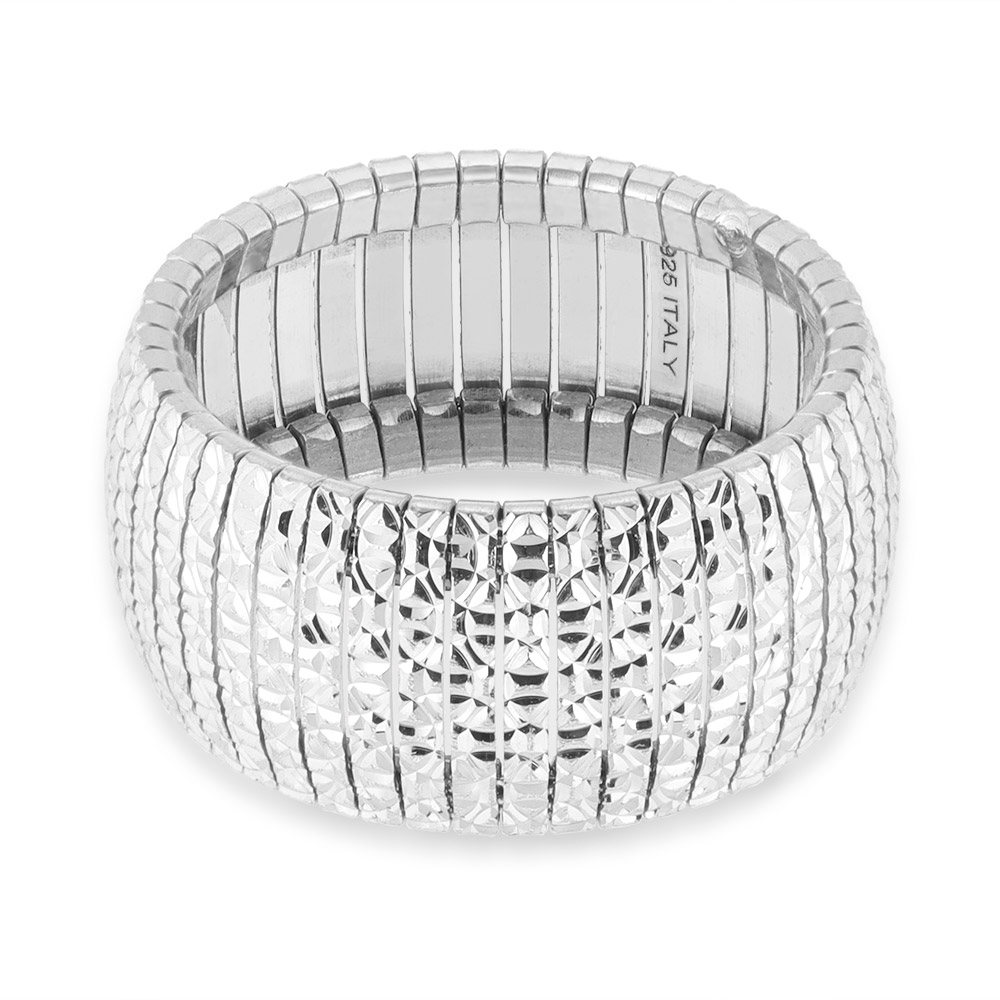 精緻な細工が織りなす構築美 イタリアン・ジュエリーカトリック教徒の一大行事、聖年(2025ジュビリー)を前に、世界の注目を集めるイタリアに思いを馳せて…。歴史と共に進化し続けるジュエリーの世界をご紹介します。今の気分にマッチする、ファッショナブルなシルバージュエリーブランドとして人気の「アンティエーレ」。指になじむカボションアーチラインの表面に幾何学的なカットをプラス。シンプルでありつつ華麗なインパクトを備えたリング。