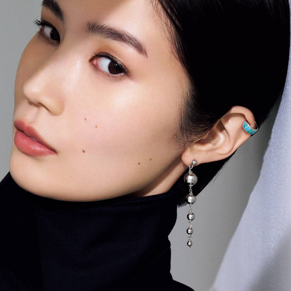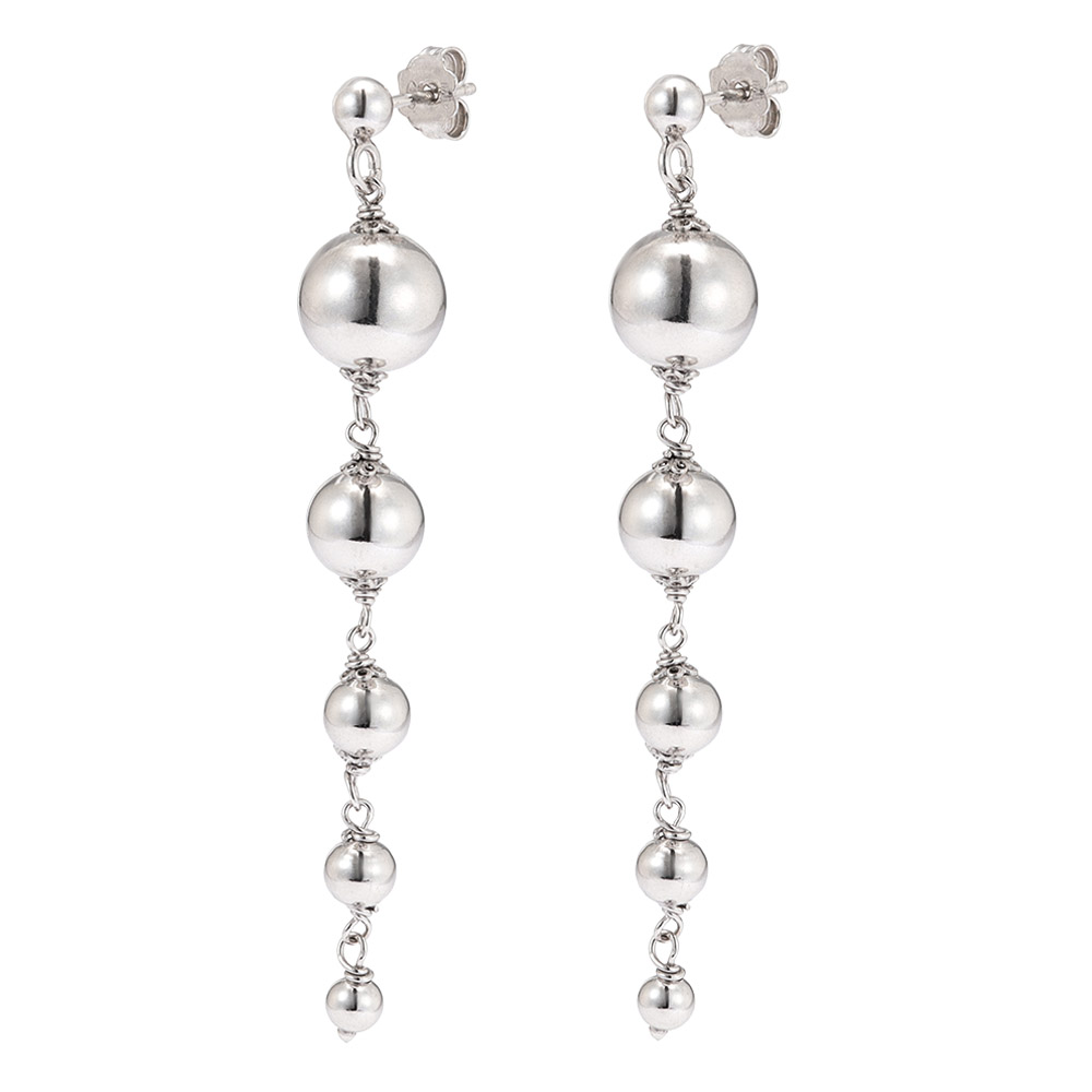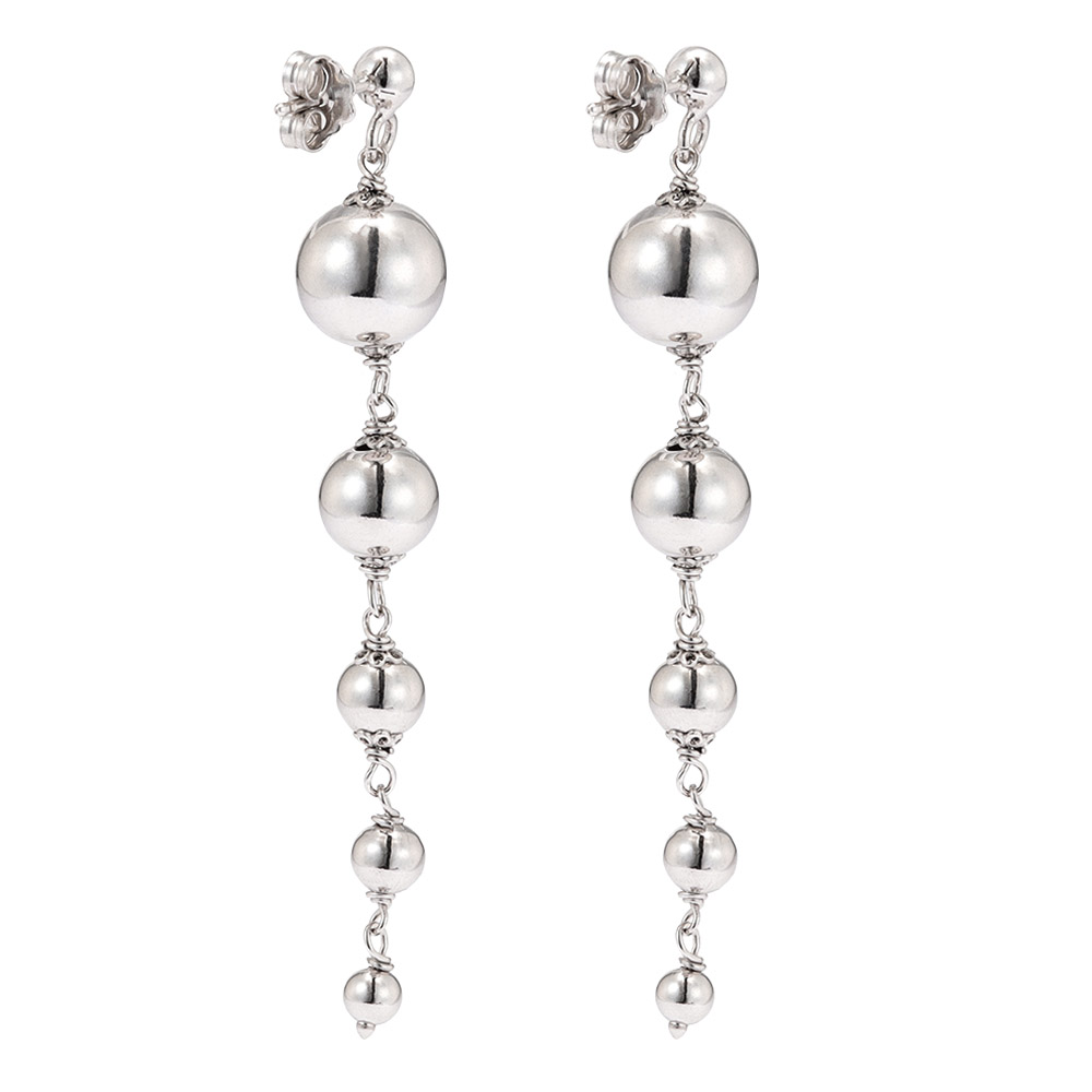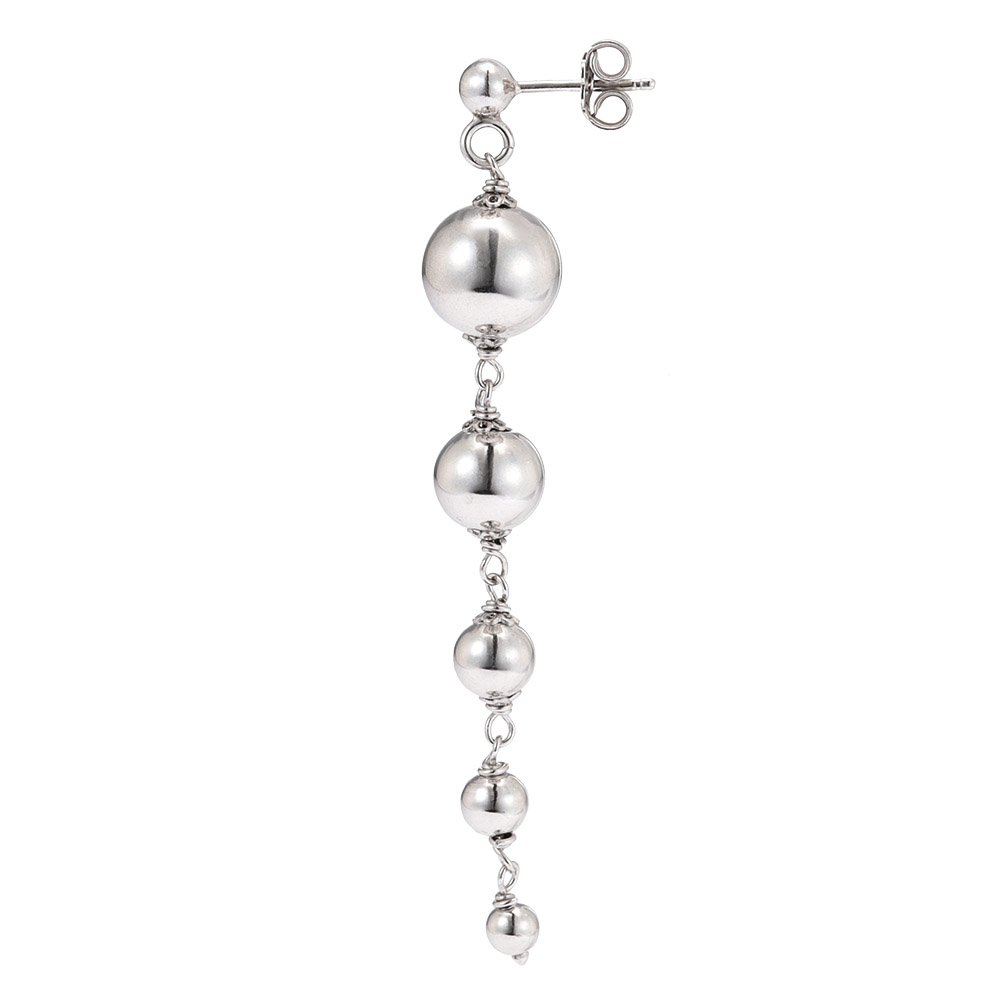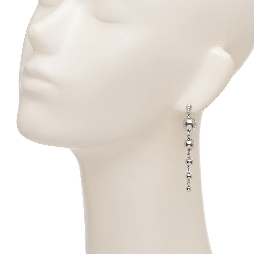 贅沢な遊び心に魅了される拘りのシルバージュエリートレンドに敏感な「アンティエーレ」のシルバージュエリー。着け映えする中空ボールのロングピアス。下に向かって小粒になるデザインが輪郭を引き締め、シャープさを演出します。