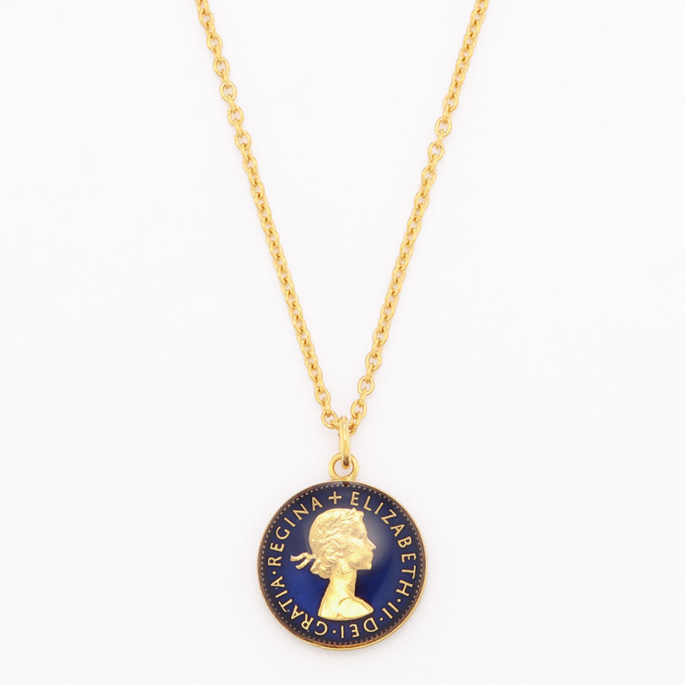 技巧を凝らした愛らしく麗しいジュエリー本物のヴィンテージコインを使用し、エナメル加工したペンダント。いずれもリバーシブルで楽しめるデザイン。