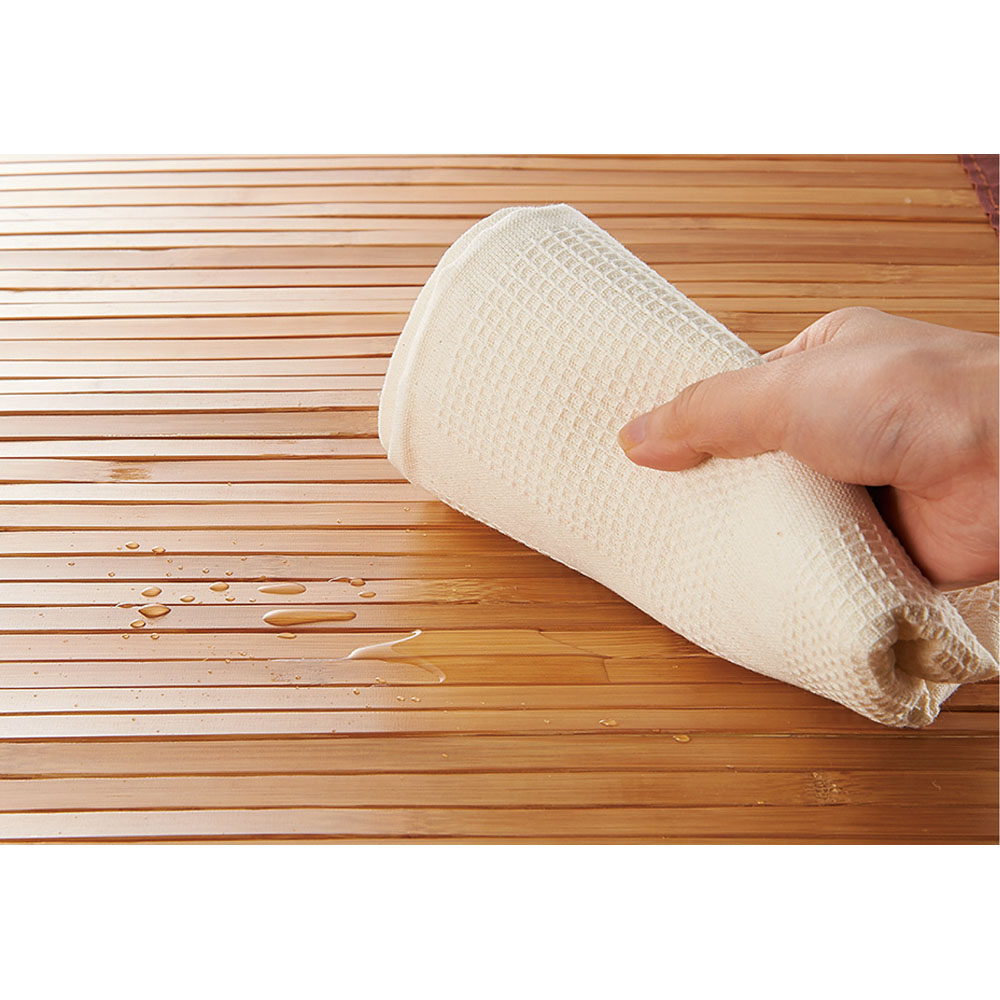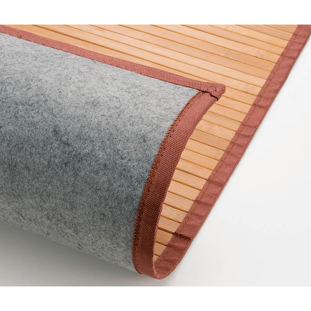 天然の接触冷感の竹素材。夏の素材としてはぴったり。竹の上品なツヤ感が、和室や洋室など部屋を選ばずに使えます。素足で過ごすことの多い夏におすすめします。天然の接触冷感を持つ良質な竹素材の中でも、特に希少な竹の表皮に近い部分を使用した、竹のラグです。身の部分(内側)に比べて密度が高く丈夫な仕上がりでひんやり感が長く続くのも特徴です。●熱伝導率が高いから、ひんやり竹は熱伝導率が高いため、ラグと接触している部分の温度を素早く発散してくれます。そのため、べたつく梅雨や夏の時期でも快適に過ごせるラグとして適しています。●丁寧な仕上げ このラグは、1枚の幅が約17mmで、糸でつないだりしていなく、よりシンプルに作られているため、天然の凹凸などはあるものの、歪みが少なくなるよう丁寧に仕上げています。(※天然の竹を使用しているので、色やサイズに若干の誤差が生じる場合があります)表面部分は汚れにくく、耐久性にも優れています。●使いやすい色展開和室にも洋室にも合わせやすい、ライトブラウン、ナチュラル、ダークブラウンの3色から選べます。