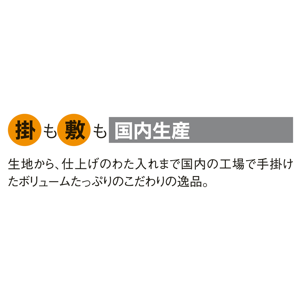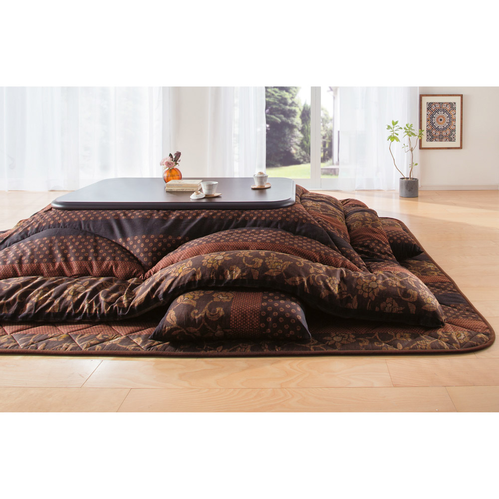 葉模様をモチーフにした繊細な万葉柄と、上品な光沢の綿生地が冬のひとときに美しいぬくもりを沿えてくれる、ロングセラーのこたつシリーズ。底付き感の少ない固わた入りで、快適な座り心地のこたつ敷きです。生地から仕上げのわた入れまで国内工場で手掛けた、こだわりの逸品。\国内生産のこだわりが詰まったこたつシリーズ。/【美しい万葉柄】葉模様をモチーフにした繊細な万葉柄が美しく上品。お部屋に馴染むカラーも嬉しい。【底付き感の少ない快適な座り心地】しっかりとした固わた約1cm入りで、底付き感や底冷えの少ない快適な座り心地。【こだわりの国内生産】生地から、仕上げのわた入れまで国内の工場で手掛けています。丁寧につくられた、こだわりの逸品です。【豊富なサイズバリエーションが魅力】正方形から超特大サイズまでご用意。豊富なバリエーションも魅力です。