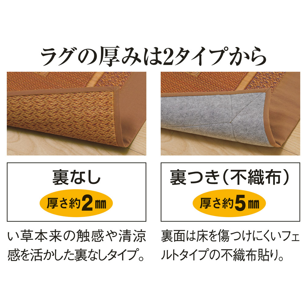 【裏なし・厚さ約2mm】い草本来の触感や清涼感を活かした裏なしタイプ。