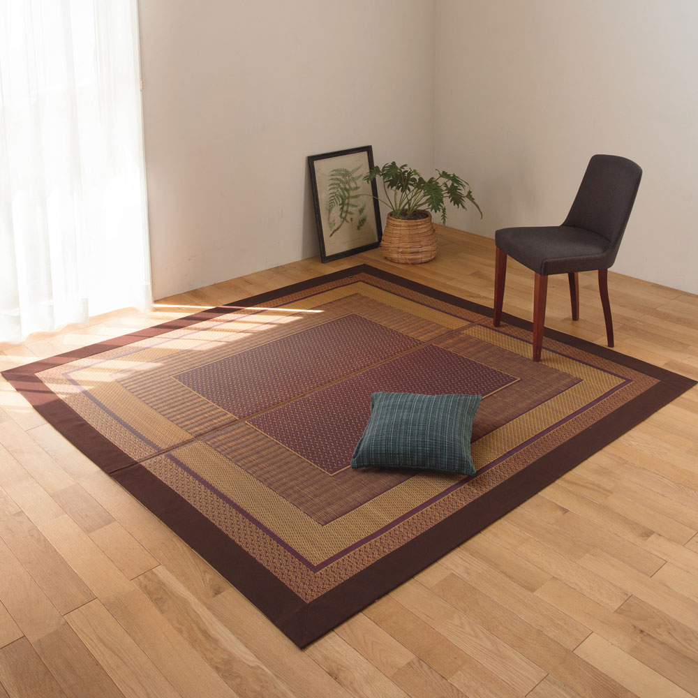 涼を運ぶい草で、夏の住まいを清々しく演出。抗菌防臭効果を加えたい草シリーズ。●紋織りい草組織の変化や色の異なるい草を用いた紋織による、美しい文様が特長。和室にも洋室にもマッチするデザインで、涼やかさを演出できます。●青森ヒバエッセンス使用の抗菌防臭加工い草が本来持っている空気洗浄力や湿度調整力といった機能の他に、青森産天然ヒバから抽出したヒバエッセンスを表面にコーティングすることで、抗菌防臭効果をプラスしています。い草本来の触感や清涼感を活かした裏なしタイプと、フローリングなどを傷つけにくい、不織布貼りの裏つきタイプ(こちらの商品は裏なしタイプになります)があります。縁にはインテリア性の高いワイドな太べりを使用しています。【い草の機能】い草は非常に高い吸収性を備え、また乾燥時には水分を室内に放出する特性を持っています。湿度の変化に対応し、優れた湿度調整機能を発揮するので、一年中快適にご使用いただけます。