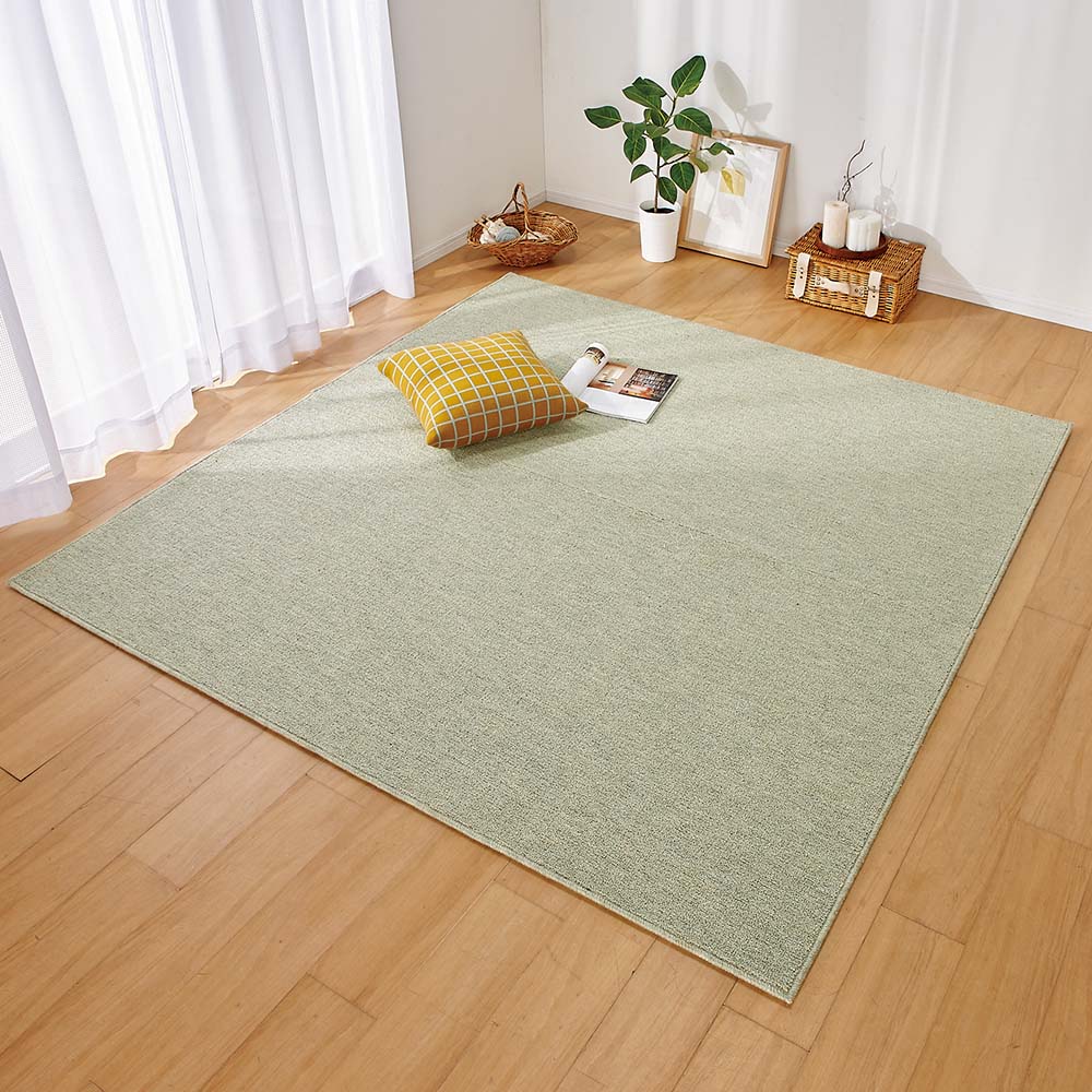 冬のイメージが強いウールですが、ウールは「呼吸する繊維」と呼ばれていて実は寒い冬から湿気の多い夏まで1年中大活躍の素材です。さらに抗菌防臭加工を施した清潔仕様で快適に。寒い冬から湿気の多い夏まで、1年中活躍するウール100%カーペット。ウールならではの優れた機能と基布に抗菌防臭加工を施した清潔仕様で、快適かつ清潔に長く愛用できます。■ウールは呼吸する繊維ウールは別名「呼吸する繊維」と呼ばれており、外気の湿気に応じて湿気を吸収・放湿する効果を持ちます。また、熱伝導率が低く、空気を含んで断熱する効果も持っているので、冬は暖かく、夏はサラッと快適で寒い冬から湿気の多い夏まで1年中お使いいただける素材です。■天然のはっ水性ウールは天然のはっ水効果も持っているため、汚れがつきにくく、リビングやダイニングなどみんなが集まる空間の敷物としても適しています。■抗菌防臭加工ウールの機能と基布に抗菌防臭加工を施した嬉しい清潔仕様。防ダニ機能もあり、快適かつ、安心清潔に長くご使用いただけます。