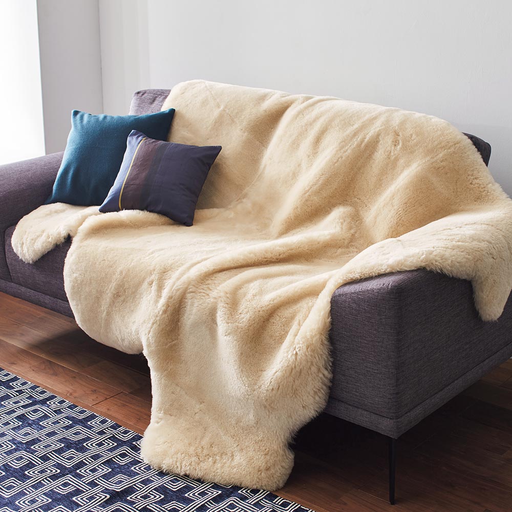 毛足約35mmのオーストラリア産ショーンラムムートン。触り心地のよいボリューム感は抜群。肉厚で滑らかな触り心地。吸湿・放湿性に優れ、冬は暖か、夏は涼しく、一年中ご愛用いただけるムートンです。毛足約35mmのオーストラリア産ショーンラムムートン。触り心地のよいボリューム感は抜群。肉厚で滑らかな触り心地。吸湿・放湿性に優れ、冬は暖か、夏は涼しく、一年中ご愛用いただけるムートンです。天然ムートンのうれしい機能■断熱・保温性高密度な毛の間にたっぷりと空気を含んで断熱します。冬物のイメージの強い天然ムートンですが、外部の温度に影響されにくい特性は一年中お使いいただくのにぴったりです。■調湿効果ムートンの毛の表面は人間の毛髪と同じで細かなうろこ状のキューティクルに覆われています。外部の湿度に合わせて、そのうろこ状のキューティクルが開閉し吸湿・放湿をします。冬は暖かく、夏もさらさらにお使いいだける秘密がこれです!さらに内部にほど良く湿気を含むため、静電気が起きにくいとも言われています。■天然の難燃性ムートンは天然で難燃性を兼ね備えています。というのも、ムートンは一般的に発火温度が高く、かつ燃焼速度も遅い繊維といわれています。燃えても毛玉になって焦げ止まり燃え広がりません。■防汚性ムートン表面にははっ水性の薄い膜の層があり、水や汚れを弾いてくれます。