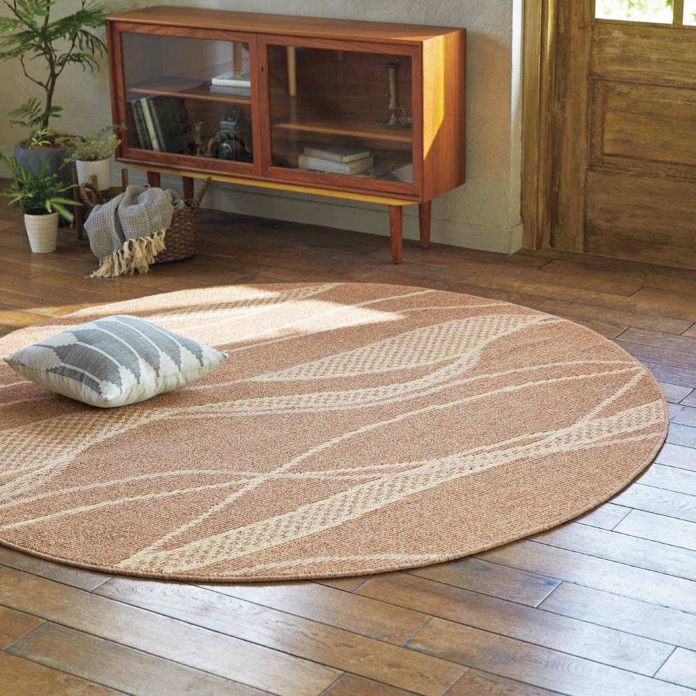 • (イ)ブラウン系(写真は円形・径約185cm) お部屋のアクセントにもなる円形タイプ。