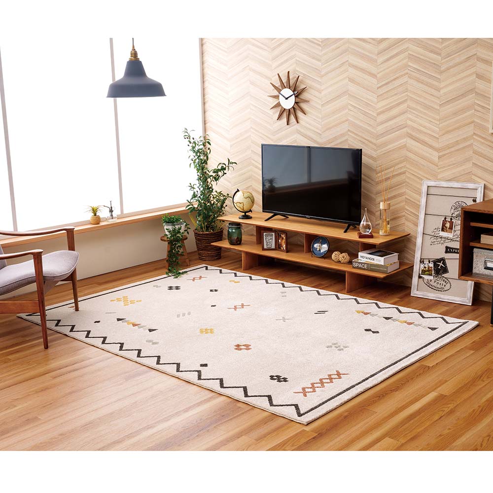 北欧イメージ漂う優しい雰囲気のカラーと印象的なデザインの玄関マット。ドロップステッチ加工を施し、柄を浮かび上がらせています。北欧イメージ漂う優しい雰囲気のカラーは、品があり、カジュアル過ぎないのが魅力です。ドロップステッチ(糸貫)加工を施し、柄を浮かび上がらせています。印象的なデザインでお部屋を明るくナチュラルなアクセントとして活躍します。【デザイナー:Katleen Verfaillie(カトリ―ン ヴェルファイリー)】コレクションのヘッドデザイナー。シンプルな幾何学デザインや伝統的なエスニックデザイン、モダンなフォルムなどを湯癒合し表現しています。ミケ:ミニマルな幾何学デザインで北欧モダンスタイルのミケ。ネカル:素朴なギャッベモチーフを遊び心あるデザインにしたネカル。リゼロ:ナチュラルカラーのベースにウォームカラーを組合わせてシンプルモダンに表現。シュリンク糸を使用し立体的に仕上げています。ナリカ:印象的な幾何学柄をドロップステッチで立体感を持たせています。●耐久性に優れたポリプロピレンと肌触りの柔らかいポリエステルの組合せポリプロピレンは軽くて耐久性に優れ、湿気を取り込みにくく、汚れが付きにくいのが特長。濡れても乾きやすく、他の素材に比べて遊び毛がほとんど出ないので、お手入れがしやすい素材です。ポリエステル糸との組み合わせで肌触りが柔らかひ。●ポリプロピレン糸は、遊び毛が出にくいヒートセット加工パイル糸に熱処理(ヒートセット加工)を施し、更に撚り加工を施すことで、やわらかな感触と弾力のあるふみ心地に。また、遊び毛が出にくくホコリが立ちにくいので、お掃除もラクに。●シュリンク糸を織り込み熱処理をすることによってハイローに仕上げ柄を浮かび上がらせています。