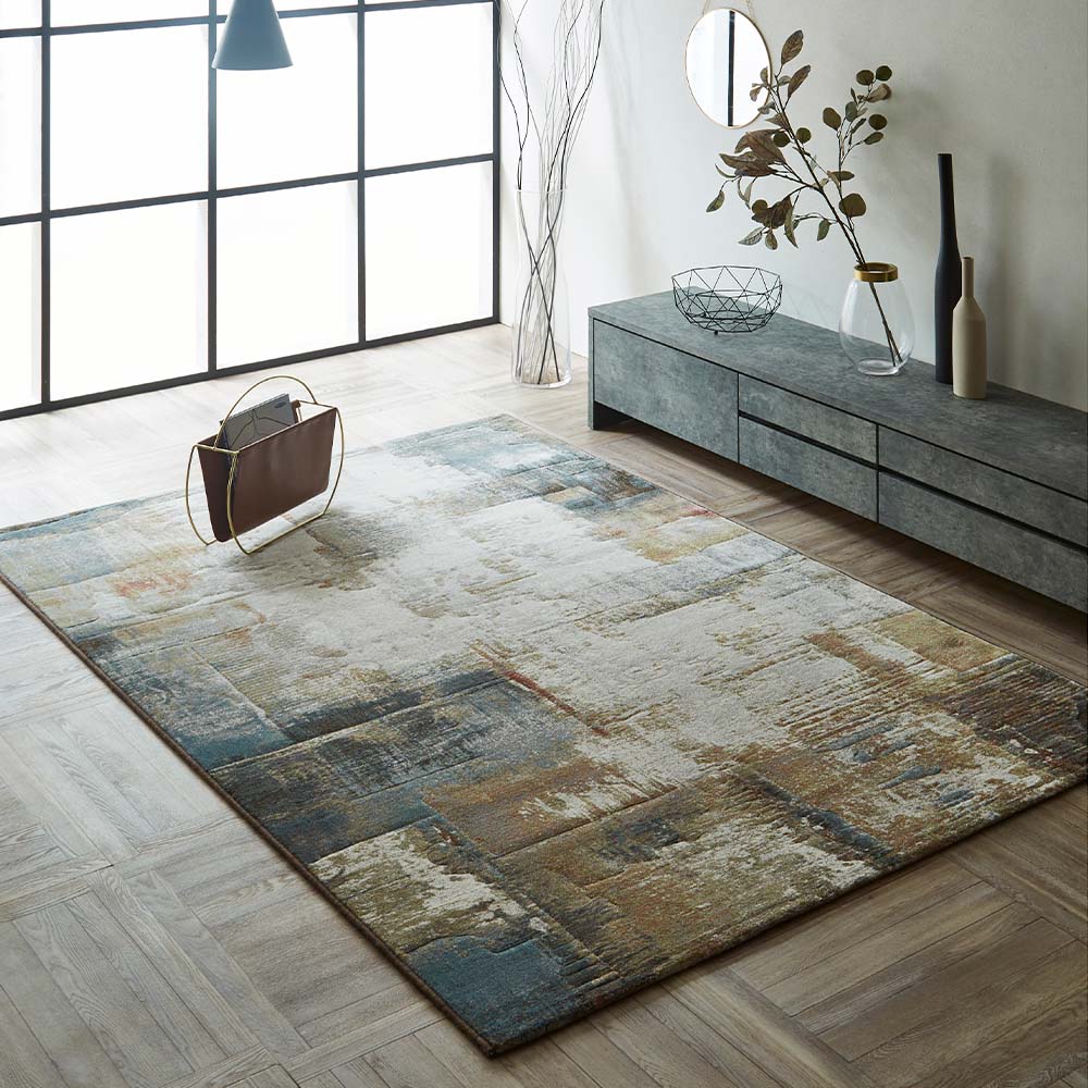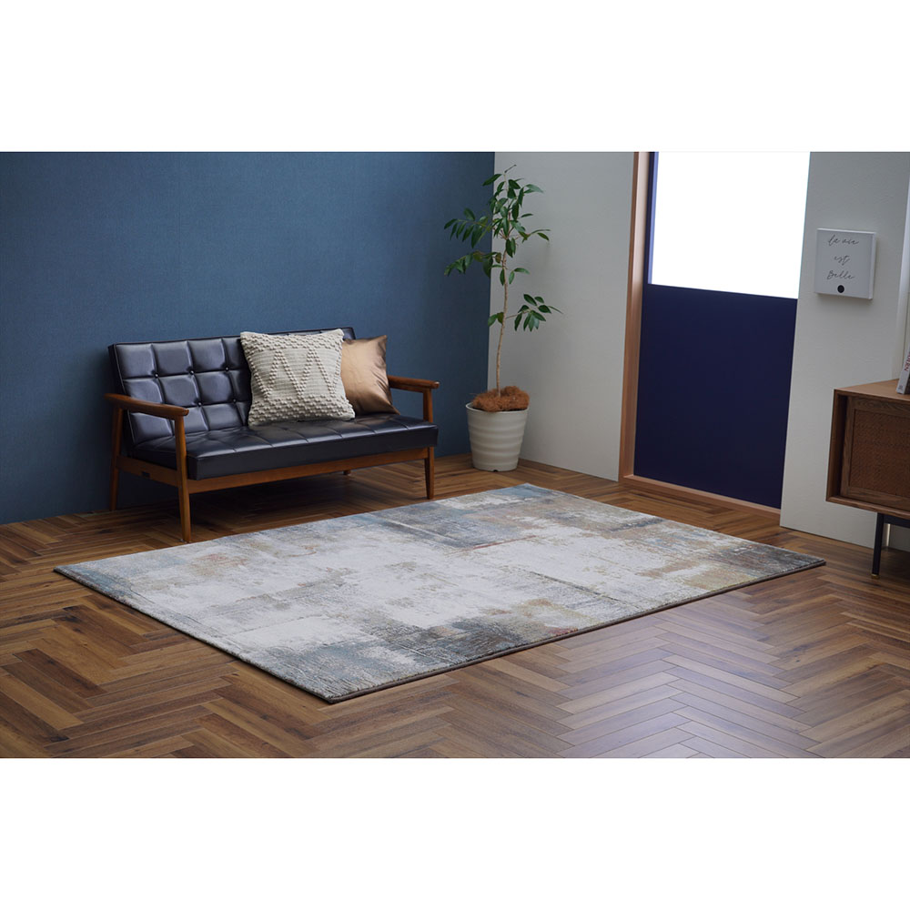 高密度に織り上げたモダンデザインラグ。抽象的なデザインがどんなコーディネートにも馴染み、ワンランク上の空間を作ります高密度に織り上げたモダンデザインラグ。抽象的なデザインがどんなコーディネートにも馴染み、ワンランク上の空間を作ります。色糸が織り成す幻想的な世界は、敷くだけで空間がシックな雰囲気に。シンプルだけどかすれ模様がビンテージ風の印象を引き出し、奥深い一枚です。●耐久性に優れたポリプロピレン100%ポリプロピレンは軽くて耐久性に優れ、湿気を取り込みにくく、汚れが付きにくいのが特長。濡れても乾きやすく、他の素材に比べて遊び毛がほとんど出ないので、お手入れがしやすい素材です。着色する場合は原料から染色するので堅牢度に優れ、色落ちしにくいという特性もあります。●遊び毛が出にくいヒートセット加工パイル糸に熱処理(ヒートセット加工)を施し、更に撚り加工を施すことで、やわらかな感触と弾力のあるふみ心地に。また、遊び毛が出にくくホコリが立ちにくいので、お掃除もラクに。●ドロップスティッチ加工ドロップスティッチ加工(糸貫)加工を施し、柄を浮かび上がらせています。