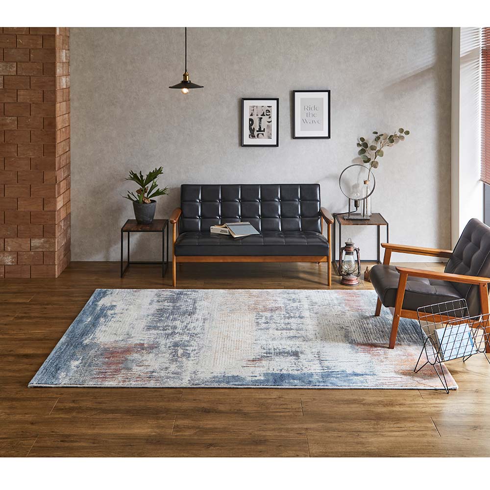 高密度に織り上げたモダンデザインラグ。抽象的なデザインがどんなコーディネートにも馴染み、ワンランク上の空間を作ります高密度に織り上げたモダンデザインラグ。抽象的なデザインがどんなコーディネートにも馴染み、ワンランク上の空間を作ります。色糸が織り成す幻想的な世界は、敷くだけで空間がシックな雰囲気に。シンプルだけどかすれ模様がビンテージ風の印象を引き出し、奥深い一枚です。●耐久性に優れたポリプロピレン100%ポリプロピレンは軽くて耐久性に優れ、湿気を取り込みにくく、汚れが付きにくいのが特長。濡れても乾きやすく、他の素材に比べて遊び毛がほとんど出ないので、お手入れがしやすい素材です。着色する場合は原料から染色するので堅牢度に優れ、色落ちしにくいという特性もあります。●遊び毛が出にくいヒートセット加工パイル糸に熱処理(ヒートセット加工)を施し、更に撚り加工を施すことで、やわらかな感触と弾力のあるふみ心地に。また、遊び毛が出にくくホコリが立ちにくいので、お掃除もラクに。●ドロップスティッチ加工ドロップスティッチ加工(糸貫)加工を施し、柄を浮かび上がらせています。