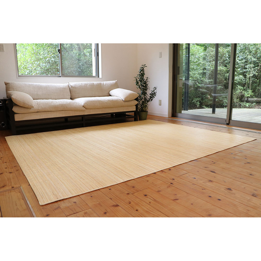 熱や湿気がこもりにくい籐の敷物で、お部屋を涼しげな夏仕様に。フローリングのリビングになじむラグサイズ。5〜7年育成された良質な籐を使用した、丈夫で美しい仕上がり。素足で感じるひんやりした心地よさと、上質な佇まいが調和する、ナチュラルな癒やしの空間を実現する籐のラグ。インテリアに合わせやすく、経年変化により味わい深さが増していくのも魅力です。※天然の籐を使用しているため、サイズ・色に誤差が生じる場合があります。【ポイント1】こだわりの39穴籐の商品を選ぶ目安は1間(約191cm)に通す横糸の穴数で、本品は上級レベルの39穴。5〜7年育成された質のよい籐を厳選して使用しており、美しさも耐久性も申し分ありません。