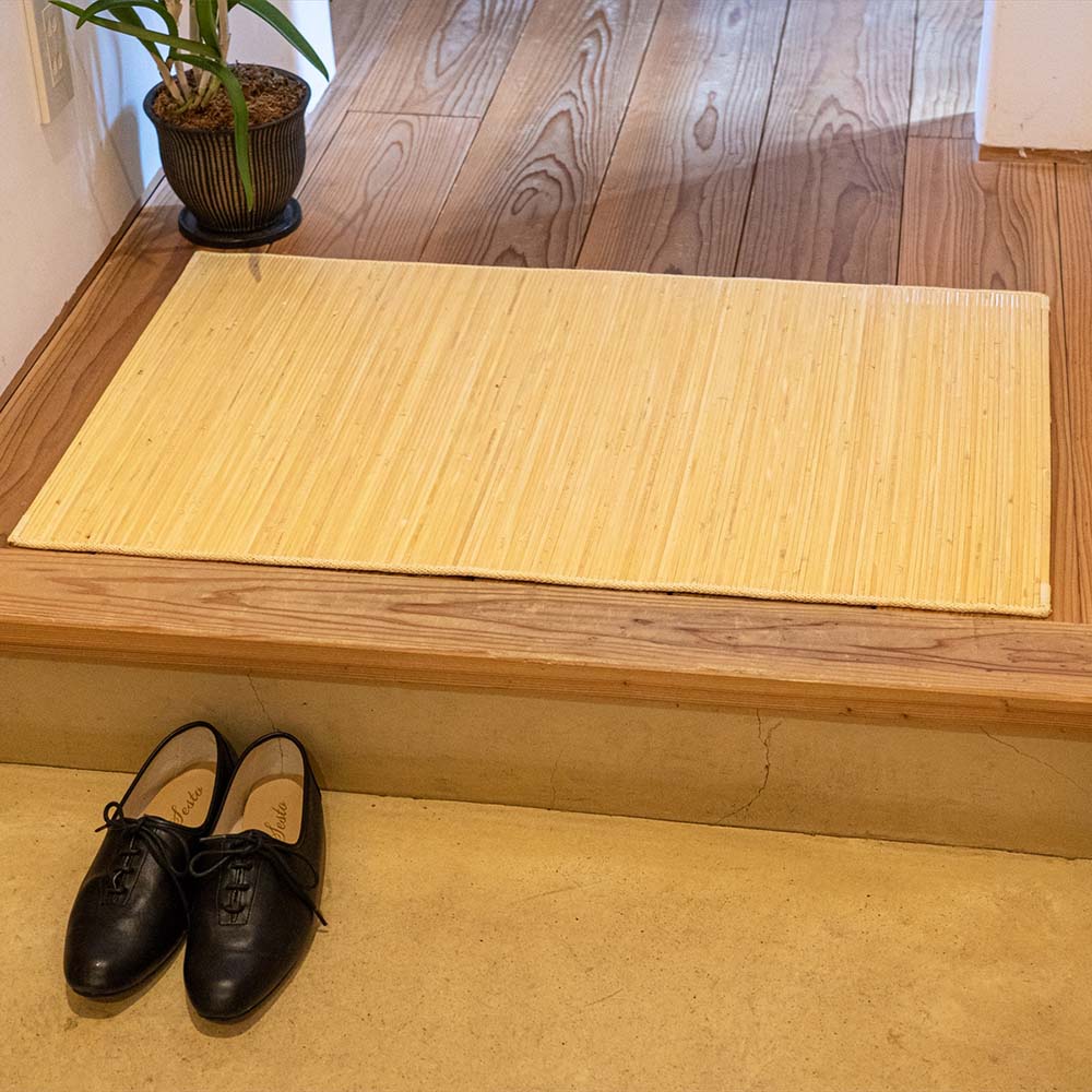 熱や湿気がこもりにくい籐のマットで、玄関やお部屋を涼しげな夏仕様に。5〜7年育成された良質な籐を使用した、丈夫で美しい仕上がり。素足で感じるひんやりした心地よさと、上質な佇まいが調和する、ナチュラルな癒やしの空間を実現する籐のマット。インテリアに合わせやすく、経年変化により味わい深さが増していくのも魅力です。ギフトにもぜひご利用ください。※天然の籐を使用しているため、サイズ・色に誤差が生じる場合があります。【ポイント1】こだわりの39穴籐の商品を選ぶ目安は1間(約191cm)に通す横糸の穴数で、本品は上級レベルの39穴。5〜7年育成された質のよい籐を厳選して使用しており、美しさも耐久性も申し分ありません。【ポイント2】裏面は滑りにくい加工裏面には滑りにくい加工が施されていますので、ズレにくく快適にご使用いただけます。
