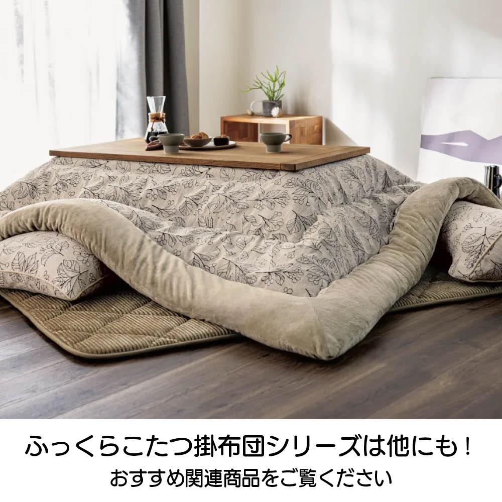 ダイニングでも使える、シェニール織りの高級感あるハイタイプこたつ掛け布団です。裏面にはフワフワで、保温性のあるボア素材を使用。リーフ柄の上品なデザインが空間になじみ、スリット入りで隙間ができにくく熱を逃しません。便利なリモコンポケット付き。丸洗いできて清潔です。こたつでほっこり。冬の暖かな団らんダイニングダイニングこそ、こたつでぬくもりを。インテリアになじむ上品なデザインが、空間に自然と溶け込みます。リモコンは便利なポケットにすっきり収納。テーブルまわりが片付き、食事も会話もより楽しく。暮らしに暖かさが加わることで笑顔が広がります。上質さと温もりを両立するダブル素材上品な光沢のシェニール織りと、ぬくもりあふれるマイクロファイバー。触れるたびに心までほっとする一枚です。使いやすさに寄り添った、細やかな機能設計すぐ手に取れてすぐ片づけられるリモコンポケットと、こたつの天板をしっかり固定できる「通し穴」付き。毎日の使い勝手を大切にした工夫が詰まっています。