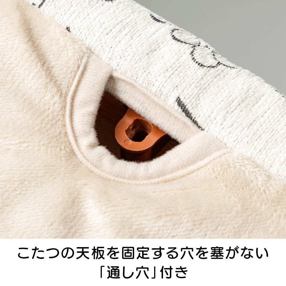 使いやすさに寄り添った、細やかな機能設計すぐ手に取れてすぐ片づけられるリモコンポケットと、こたつの天板をしっかり固定できる「通し穴」付き。毎日の使い勝手を大切にした工夫が詰まっています。