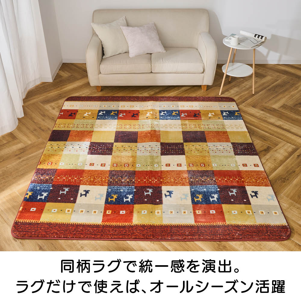 (イ)マルチ・正方形 やさしい風合いのギャッベ柄で、冬のリビングにぬくもりを