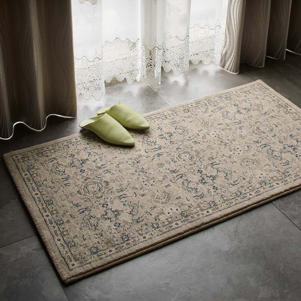伝統のオリエンタル柄が繊細な配色のボカシ表現で織られたアンティーク調のデザイン。耐久性のある素材で肌触りも柔らかです。