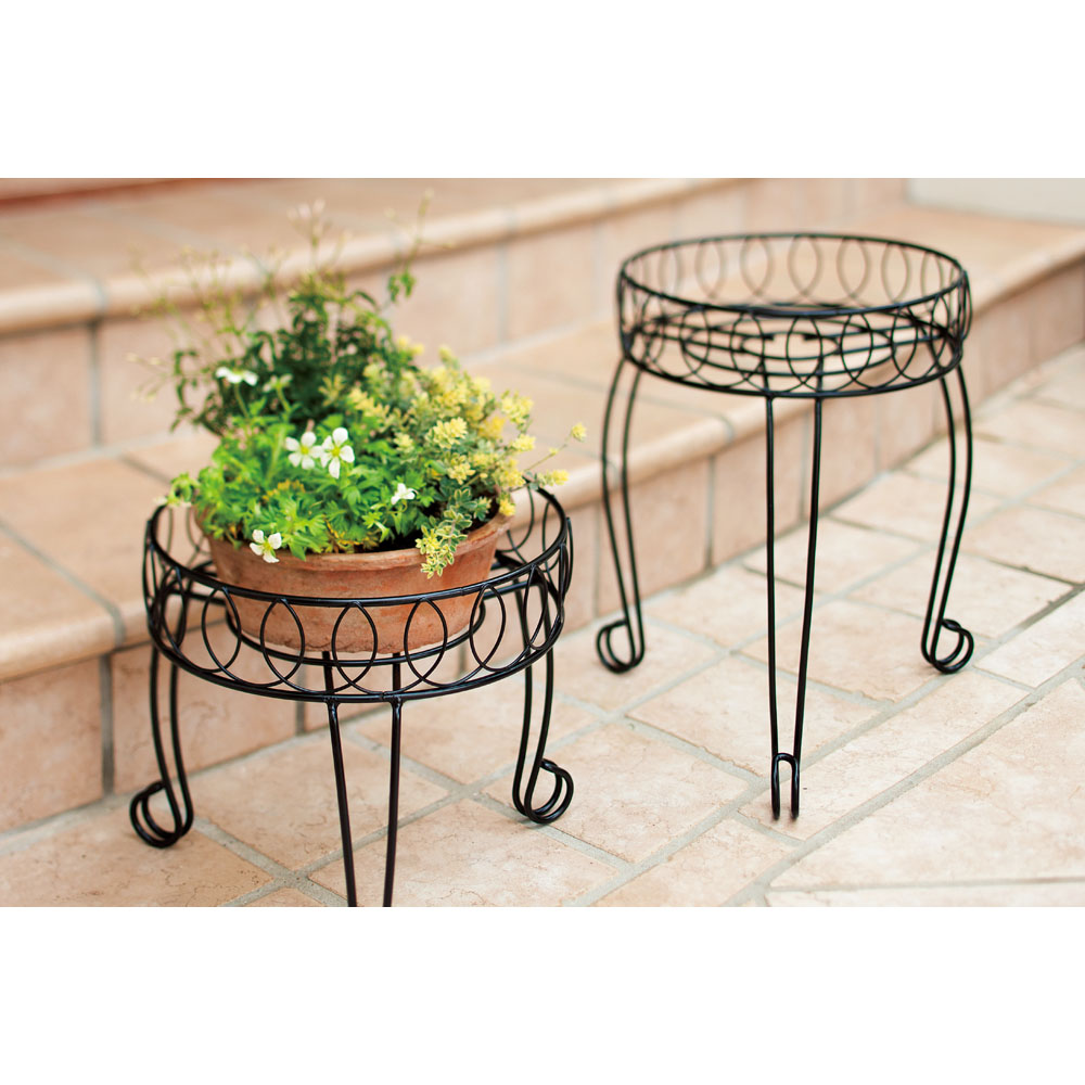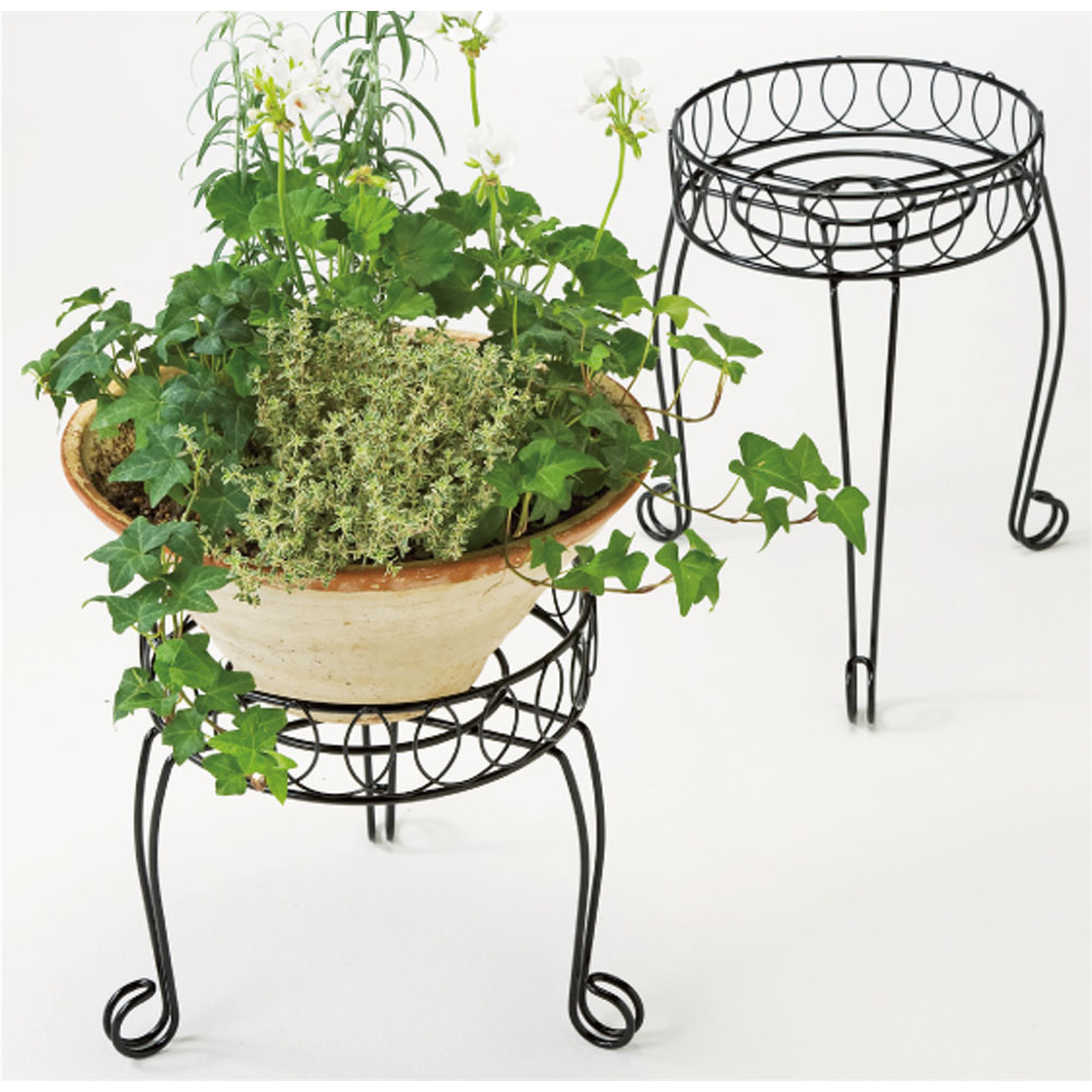 エレガントな猫脚とシンプルな曲線がガーデンにもお部屋にも品良くなじむ花台。高さの違う2点で飾り方に変化がつけられます。