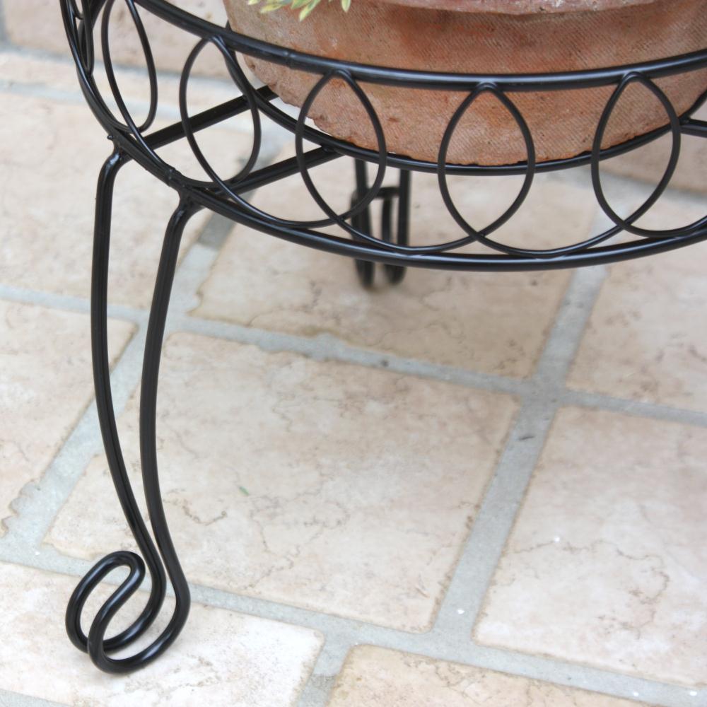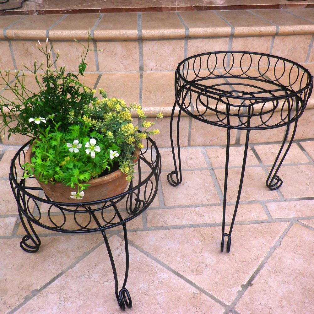 エレガントな猫脚の花台。高さの違う2点セットで飾り方に変化を。◆曲線を生かしたデザインですっきりとしたコーナーに。ひな壇風に飾っても、横に並べても。◆高低差をつけ動きを出す2個組。◆高さに差がでるので、動きが出て上級者風のアレンジが可能に。◆お庭にも、ベランダにも。◆ツール置き場や作業台としても。◆主に植木鉢を置くのに使いますが、草花の美しさを引き立てて落ち着いた、素敵な雰囲気が出ます。◆植物は地面に直接置くよりもこうした高さのあるところに配置した方が、通気性や光が増します。◆インスタ映えする写真が撮れそうです。