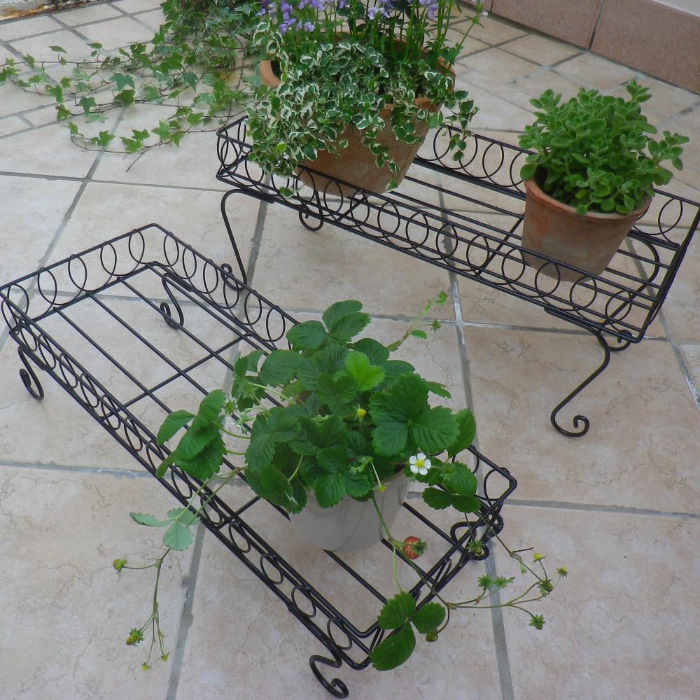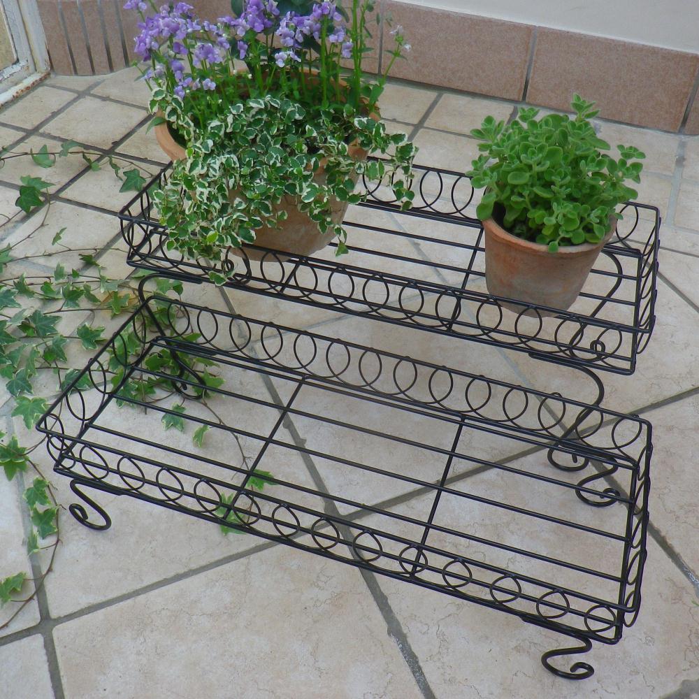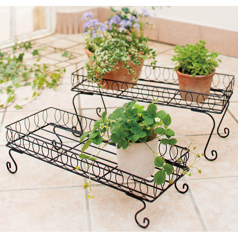 高さ違いの2台の鉢台でバラバラな印象になりがちな鉢植えをひとまとめに。◆曲線を生かしたデザインですっきりとしたコーナーに。ひな壇風に飾っても、横に並べても。◆高低差をつけ動きを出す2個組。◆高さに差がでるので、動きが出て上級者風のアレンジが可能に。◆奥行はどんな場所にも置ける23cm!狭いお庭や、ベランダにも。◆ツール置き場や作業台としても。◆主に植木鉢を置くのに使いますが、草花の美しさを引き立てて落ち着いた、素敵な雰囲気が出ます。◆植物は地面に直接置くよりもこうした高さのあるところに配置した方が、通気性や光が増します。◆インスタ映えする写真が撮れそうです。