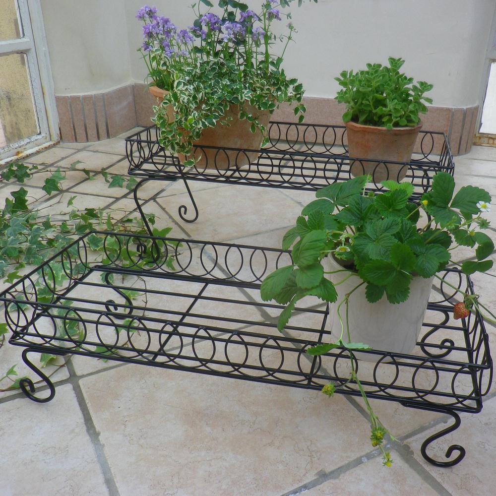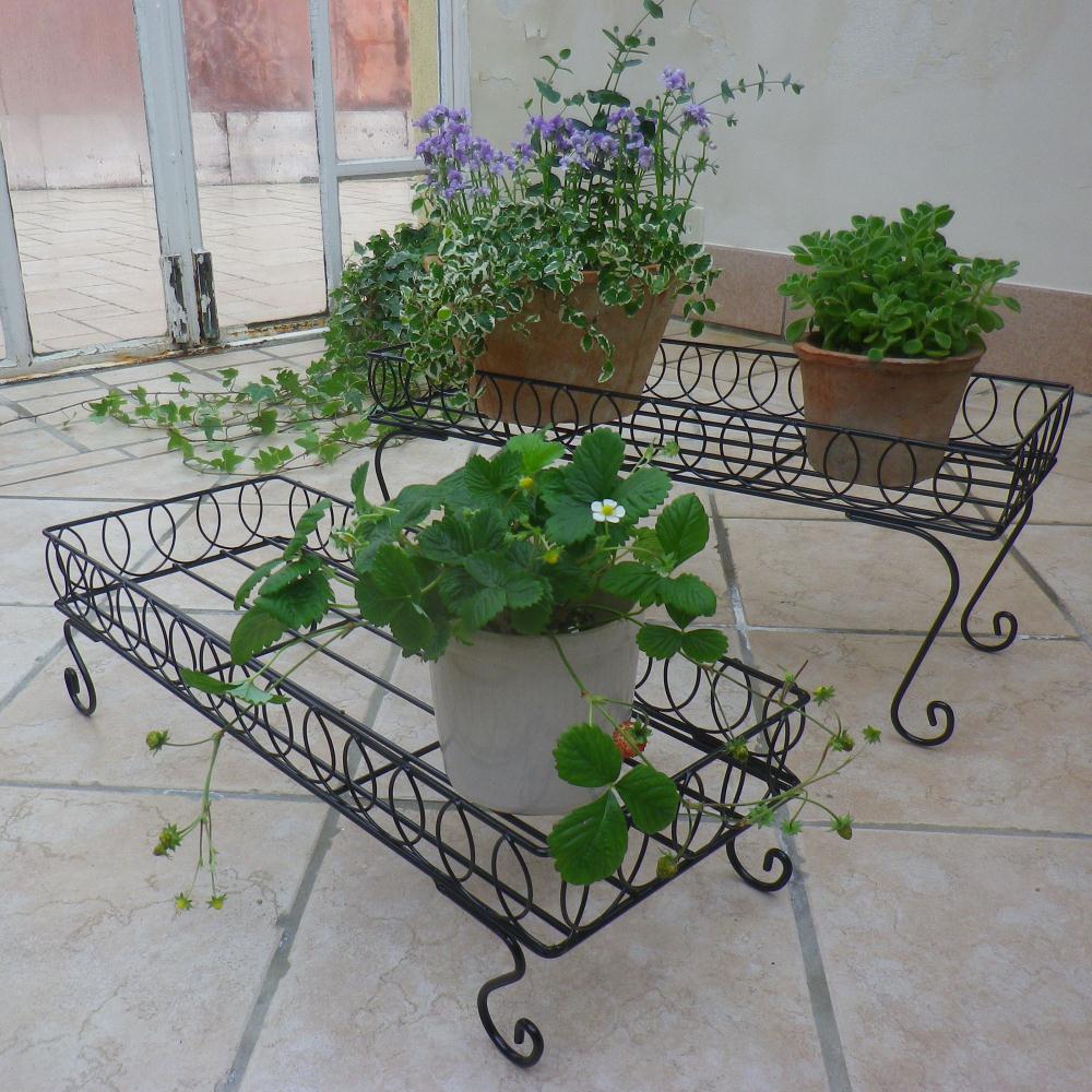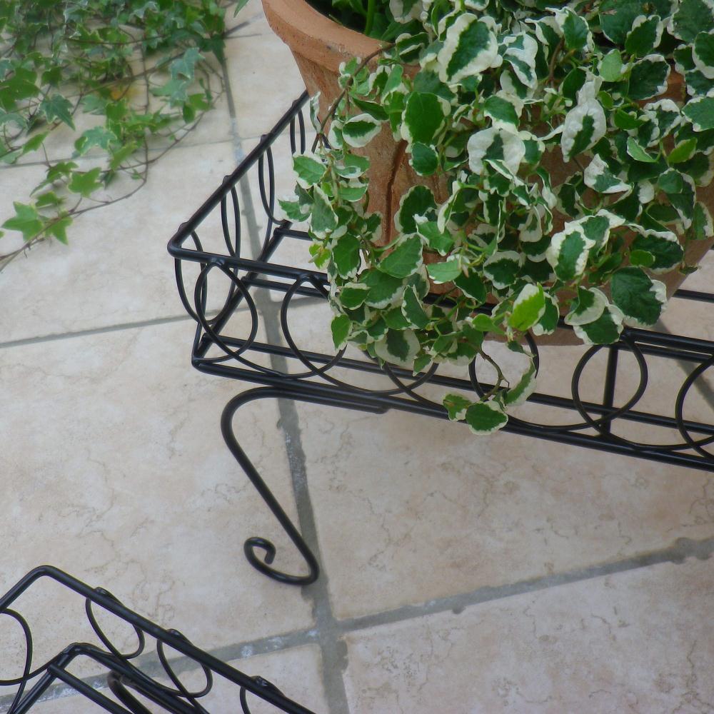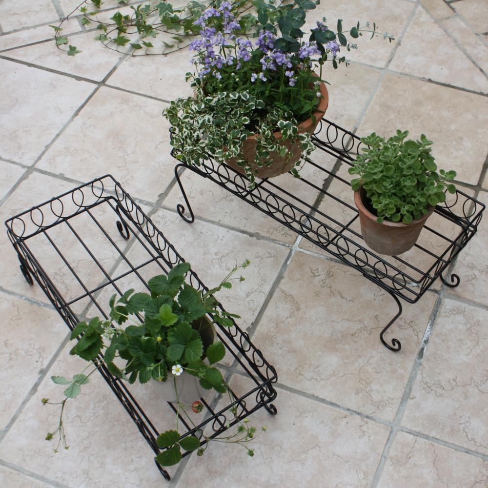 高さ違いの2台の鉢台でバラバラな印象になりがちな鉢植えをひとまとめに。◆曲線を生かしたデザインですっきりとしたコーナーに。ひな壇風に飾っても、横に並べても。◆高低差をつけ動きを出す2個組。◆高さに差がでるので、動きが出て上級者風のアレンジが可能に。◆奥行はどんな場所にも置ける23cm!狭いお庭や、ベランダにも。◆ツール置き場や作業台としても。◆主に植木鉢を置くのに使いますが、草花の美しさを引き立てて落ち着いた、素敵な雰囲気が出ます。◆植物は地面に直接置くよりもこうした高さのあるところに配置した方が、通気性や光が増します。◆インスタ映えする写真が撮れそうです。