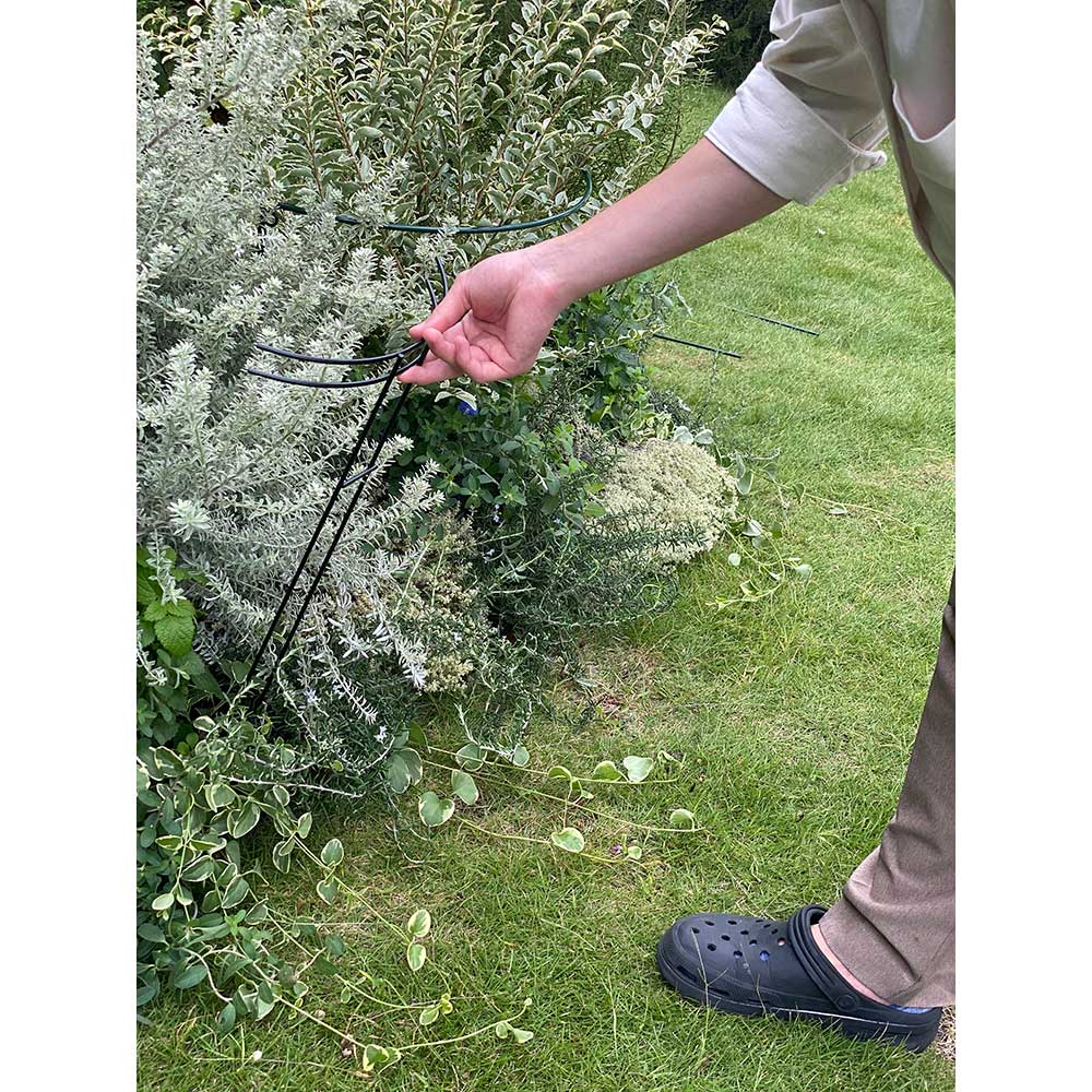 バラの苗を定植するときや、広がりがちな草花などに、倒れないようサッと土に差してサポート。半円形の上部で花をやさしく支えます。◆定植したてのバラや広がりがちな草花を倒れないようにしっかりと苗を支えます。◆ミニサイズなので気軽に挿してお使い頂けます。◆発育旺盛な植物や広がりがちな植物にもおすすめ。◆半円形の7本セットでお届けします。◆色はブラックかグリーンからお選びください。◆安心な国内製造の日本製。