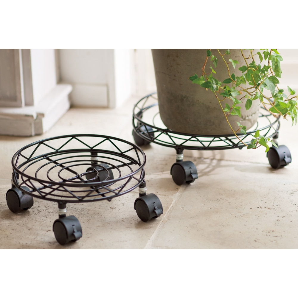 鉢植えを軽くスイスイ移動できるキャスター付きの花台。縁があるので鉢を動かしても安定感があります。◆日本製の丁寧な作りで、縁があるので鉢を置いても安定感があります。◆高さに差がでるので、動きが出て上級者風のアレンジが可能に。◆径はどんな場所にも置ける23&29cmの2個組!狭いお庭や、ベランダにも。◆ツール置き場や作業台としても。◆主に植木鉢を置くのに使いますが、草花の美しさを引き立てて落ち着いた、素敵な雰囲気が出ます。◆植物は地面に直接置くよりもこうした高さのあるところに配置した方が、通気性や光が増します。◆インスタ映えする写真が撮れそうです。