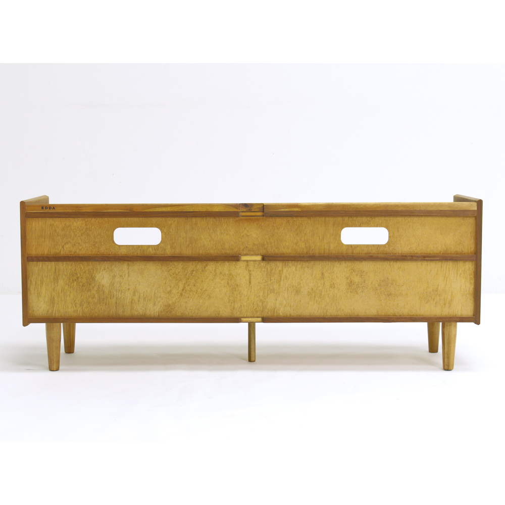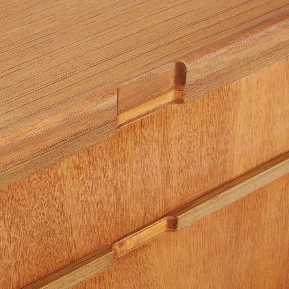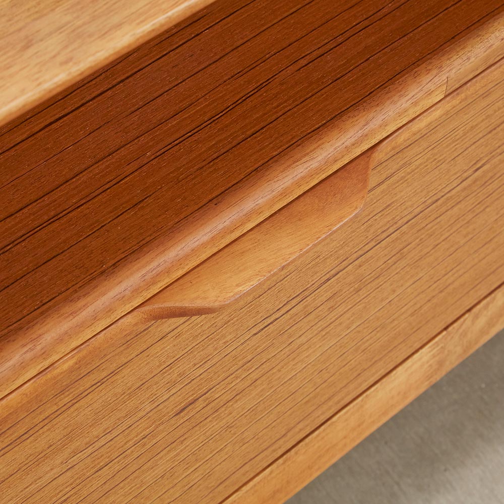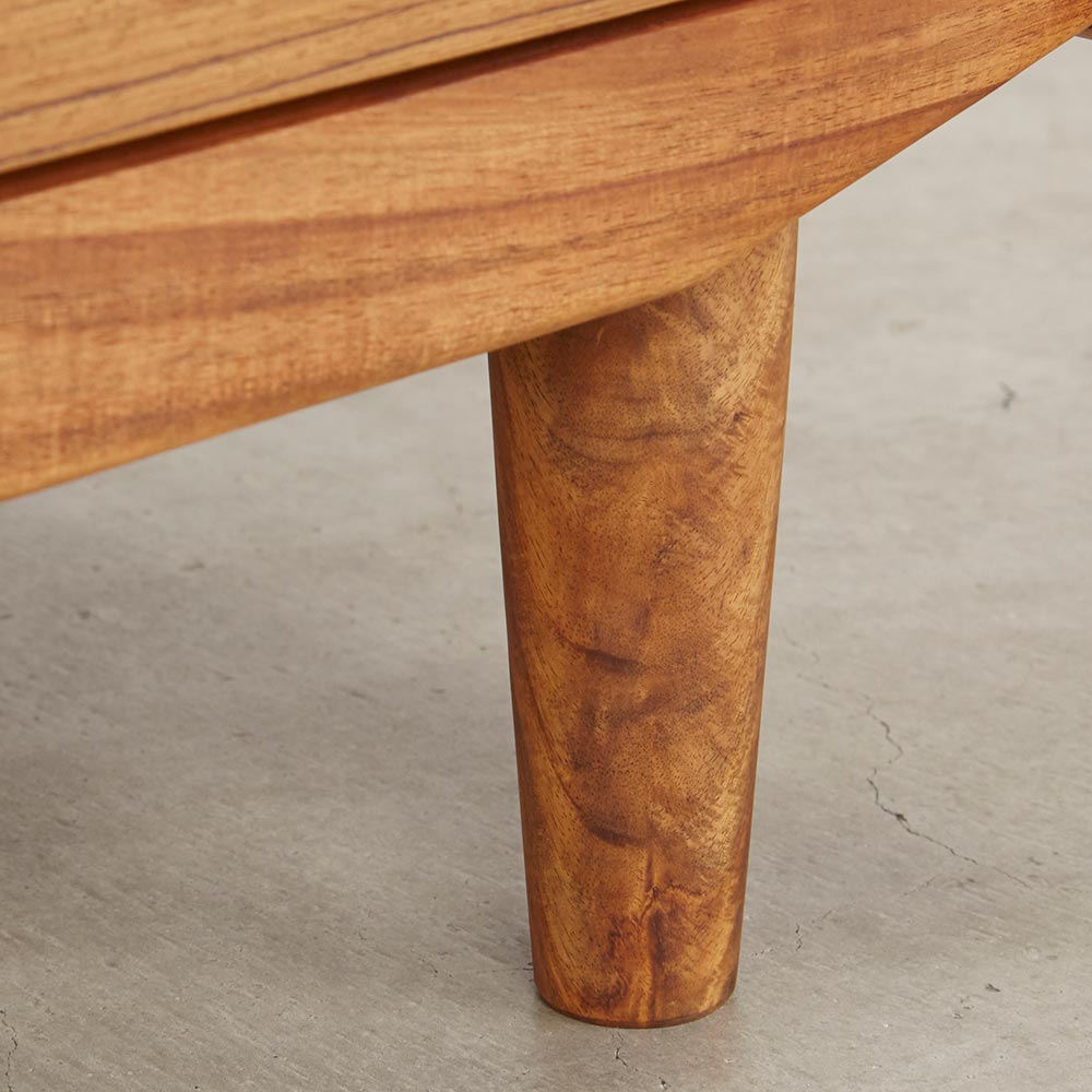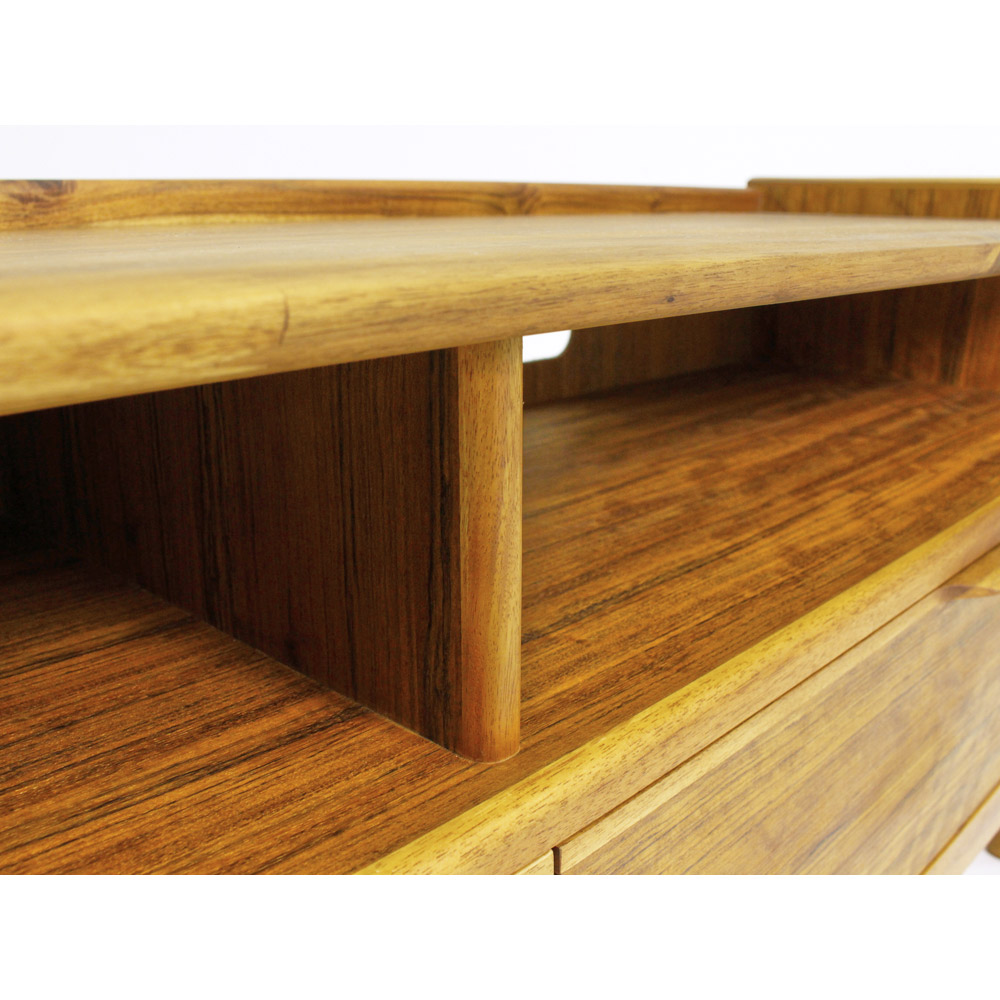 北欧ヴィンテージ家具のディテールを踏襲しつつ、日本の住宅事情に合わせたサイズのテレビボード。本物の北欧アンティーク家具に多用されている人気のチーク材を使用しているので、スカンジナビア風のお部屋コーディネートにお勧めです。北欧ヴィンテージ家具のディテールを踏襲チークの木目が美しい突き板仕様、柔らかい曲線でやさしく手になじむ取っ手、先端に向かって細くテーパードした脚など、手間暇を惜しまず熟練の技で仕上げた造りも特徴です。仕上げ塗料の原料には日本伝統の荏胡麻を使用。乾燥に時間がかかりますが、食用のため安全性が高く、化学物質を含まないので木が呼吸し続けることができます。