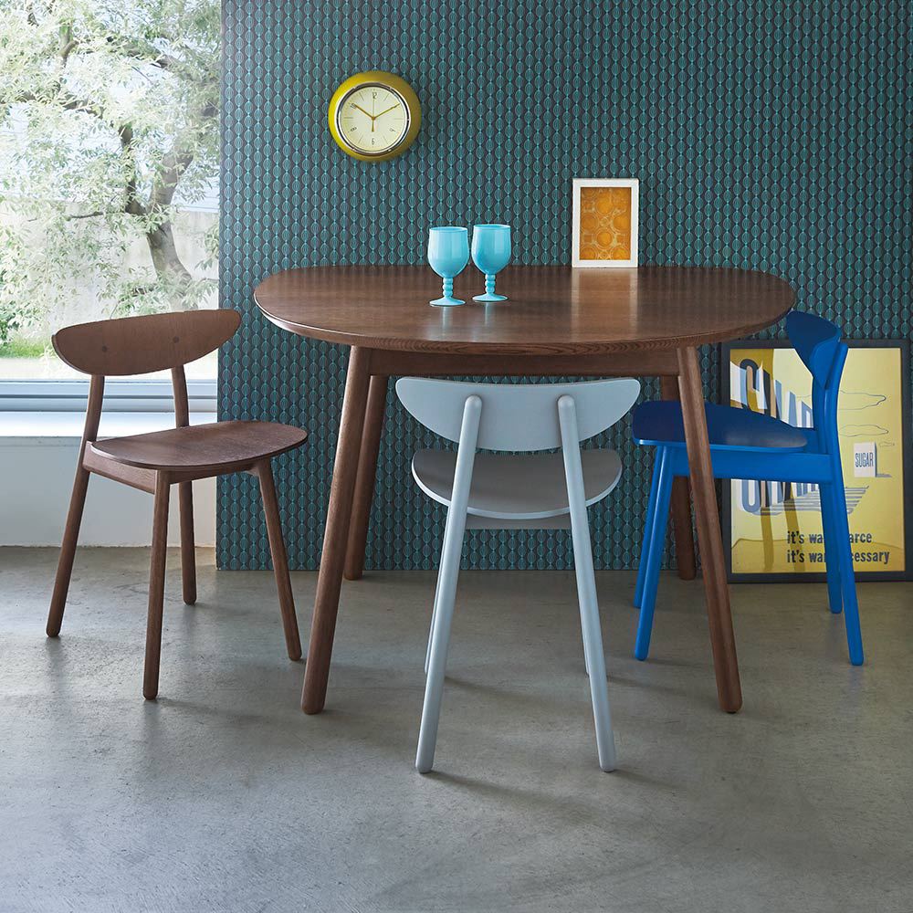 脚は丸みの優しい棒材を採用。天然木なら出なのやさしいシルエットが魅力です。