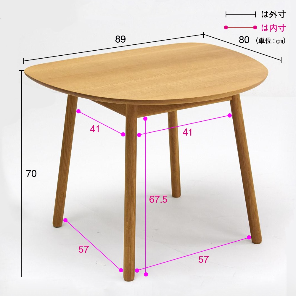 横幅が89cm、前後の奥行きは80cm。みんなで囲んでも、一辺を壁につけても。
