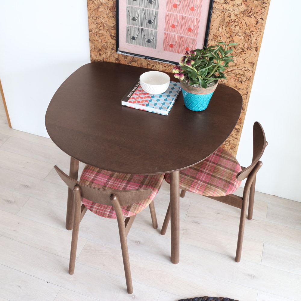 ※本ページではテーブルのみの販売です。 [コーディネート例] (イ)ブラウン 独特の形が小さなテーブルでも天板は広々、をかなえます。