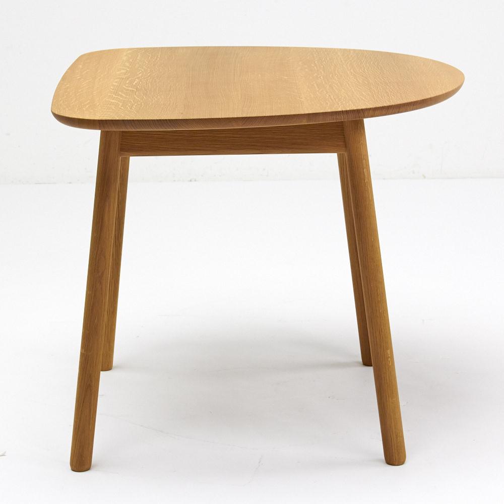 飛騨産業のコンパクトで軽快、空間を広く使える「コブリナ=小ぶりな」テーブル。半円形のような形状は、円卓としても、壁に寄せて省スペースに使うこともできます。cobrinaとは新進気鋭の建築オフィス「トラフ建築設計事務所」と日本の老舗家具メーカー「飛騨産業」との協同によって生まれた家具シリーズ。コンパクトで気軽、まわりの空間も広く見せることができる「こぶりな」家具。ユニークなサイズとデザイン幅89cmのコンパクトサイズで、チェアの座面をそのまま大きくしたような半円に近いデザインがユニークなリビングダイニングテーブルです。やさしい印象の曲線フォルムは、1辺が直線に近くなっているので、壁に寄せて省スペースで置くことができ、お部屋を広々使えます。もちろん、壁から離して円卓のように集まって使うこともできます。無垢材だからできる安心仕様角部分もアール仕上げで、小さなお子さまのいるご家庭でも安心してお使いいただけます。素材には、自然のままの美しい木目を活かした温もりあふれるオーク天然木を使用しています。オーク材の虎斑(とらふ)についてオーク(ナラ)材は、真っすぐにのびた木目が美しいのが特徴ですが、柾目(まさめ)には虎斑(とらふ)と呼ばれる虎の斑紋のような模様が必ずあるのが特徴です。虎斑は木が養分を貯蔵する役割のあった細胞であり、木の中心部から年輪を横断するように放射状に広がっています。木材を柾目でカットした場合は、必ずこの虎斑模様が現れます。この虎斑は、オーク材が育ってきた証でもあり、オーク材家具の魅力です。飛騨の技と心を受け継ぐ老舗メーカー「飛騨産業」日本有数の家具の産地である岐阜県・飛騨高山。1920年に創業した「飛騨産業」は、“ 飛騨の匠”で知られる伝統技術、山々に密生した豊富なブナ原生林を資源に持つこの地で一世紀もの歴史を刻み、「キツツキマークの木製家具メーカー」として国内のみならず、世界でも高い評価を得ています。トラフ建築設計事務所鈴野浩一(すずの こういち)と禿真哉(かむろ しんや)により2004年に設立。建築の設計をはじめ、インテリアデザイン、展覧会の会場構成、プロダクトデザイン、空間インスタレーションやムービー制作への参加など多岐に渡り、建築的な思考をベースに取り組んでいる。主な作品に「テンプレート イン クラスカ」「NIKE 1LOVE」「港北の住宅」「空気の器」「ガリバーテーブル」など。「光の織機(Canon Milano Salone 2011)」は、会期中の最も優れた展示としてエリータデザインアワード最優秀賞に選ばれた。2015年「空気の器」が、モントリオール美術館において、永久コレクションに認定。2011年「空気の器の本」、作品集「TORAFU ARCHITECTS 2004-2011 トラフ建築設計事務所のアイデアとプロセス」 (ともに美術出版社)、2012年絵本「トラフの小さな都市計画」 (平凡社)を刊行。cobrinaは2013年より販売され、2015年にグッドデザイン賞を受賞しました。ハウススタイリングは、HIDA(飛騨産業)の正規販売店ですディノス・ハウススタイリングは、HIDA(飛騨産業)の製品の正規販売店です。並行輸入品やリプロダクト、ジェネリックと称するコピー商品は販売しておりません。